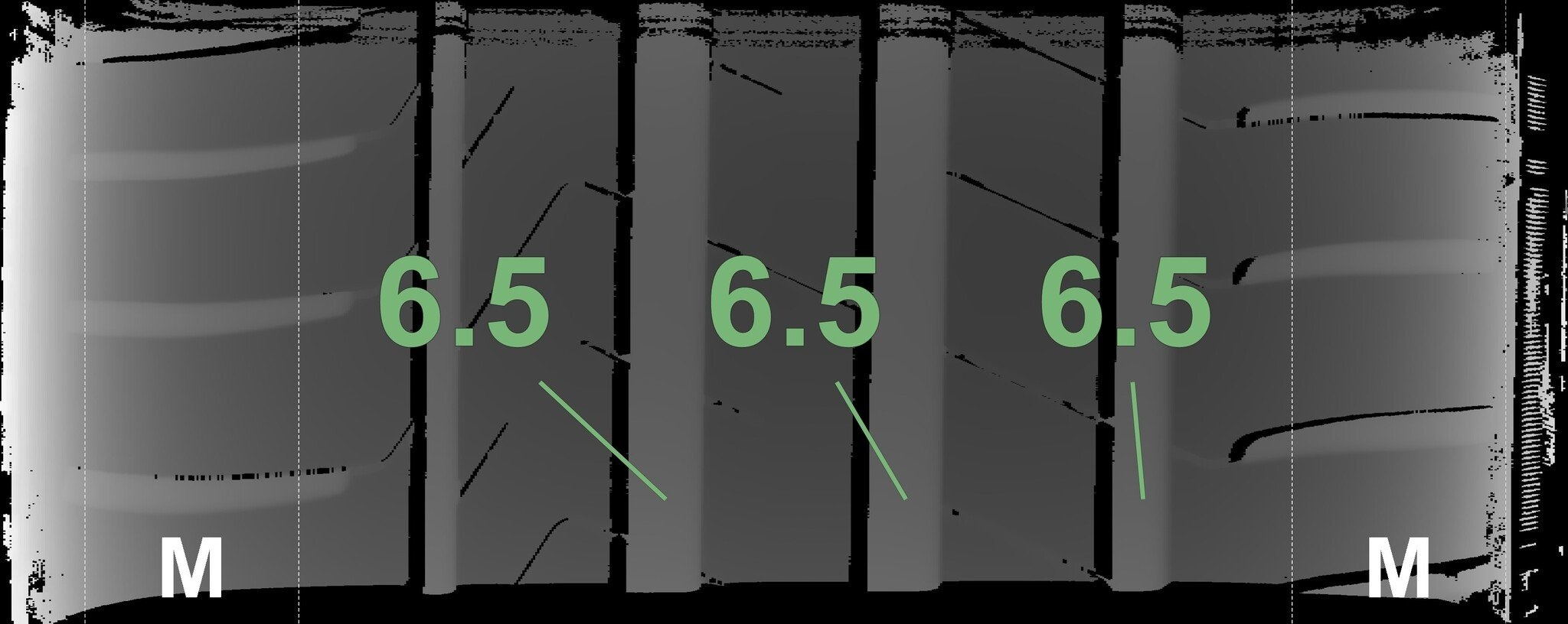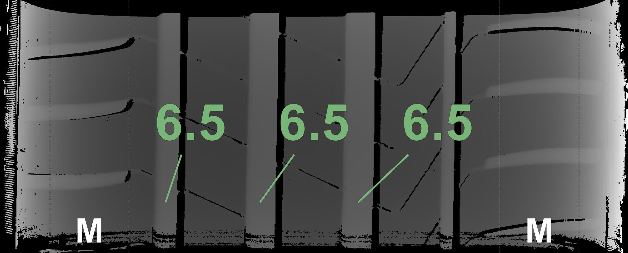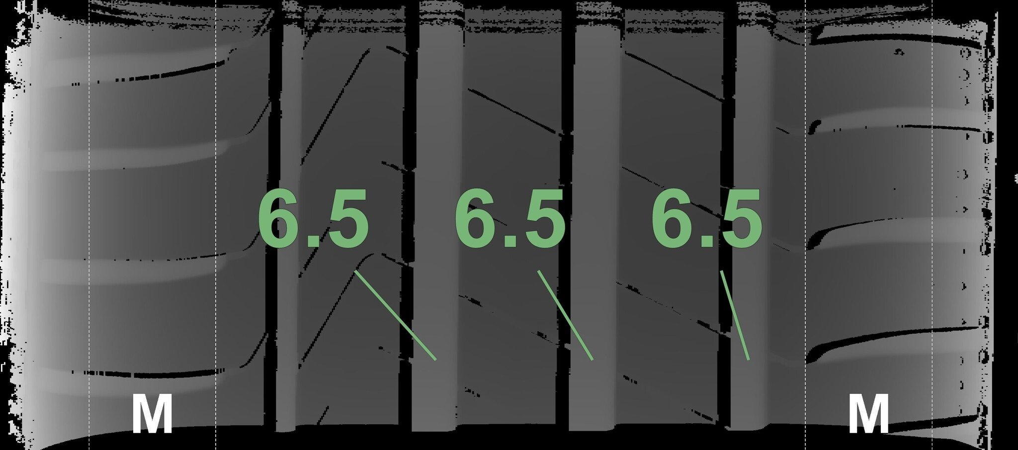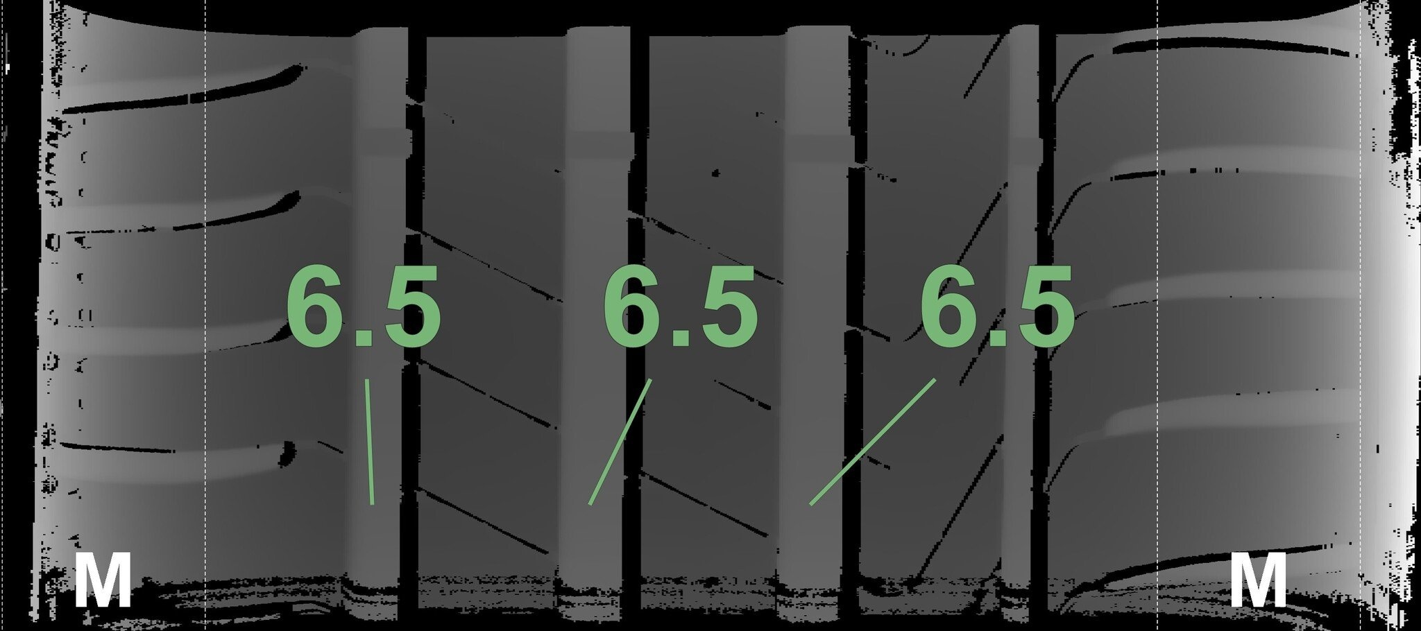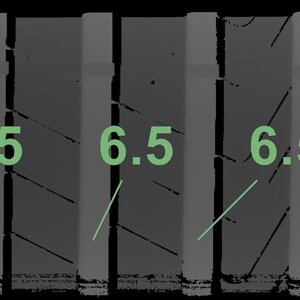 De gemeten profieldieptes en de details van de velgen zijn hierboven weergegeven.