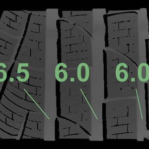 De gemeten profieldieptes en de details van de velgen zijn hierboven weergegeven.