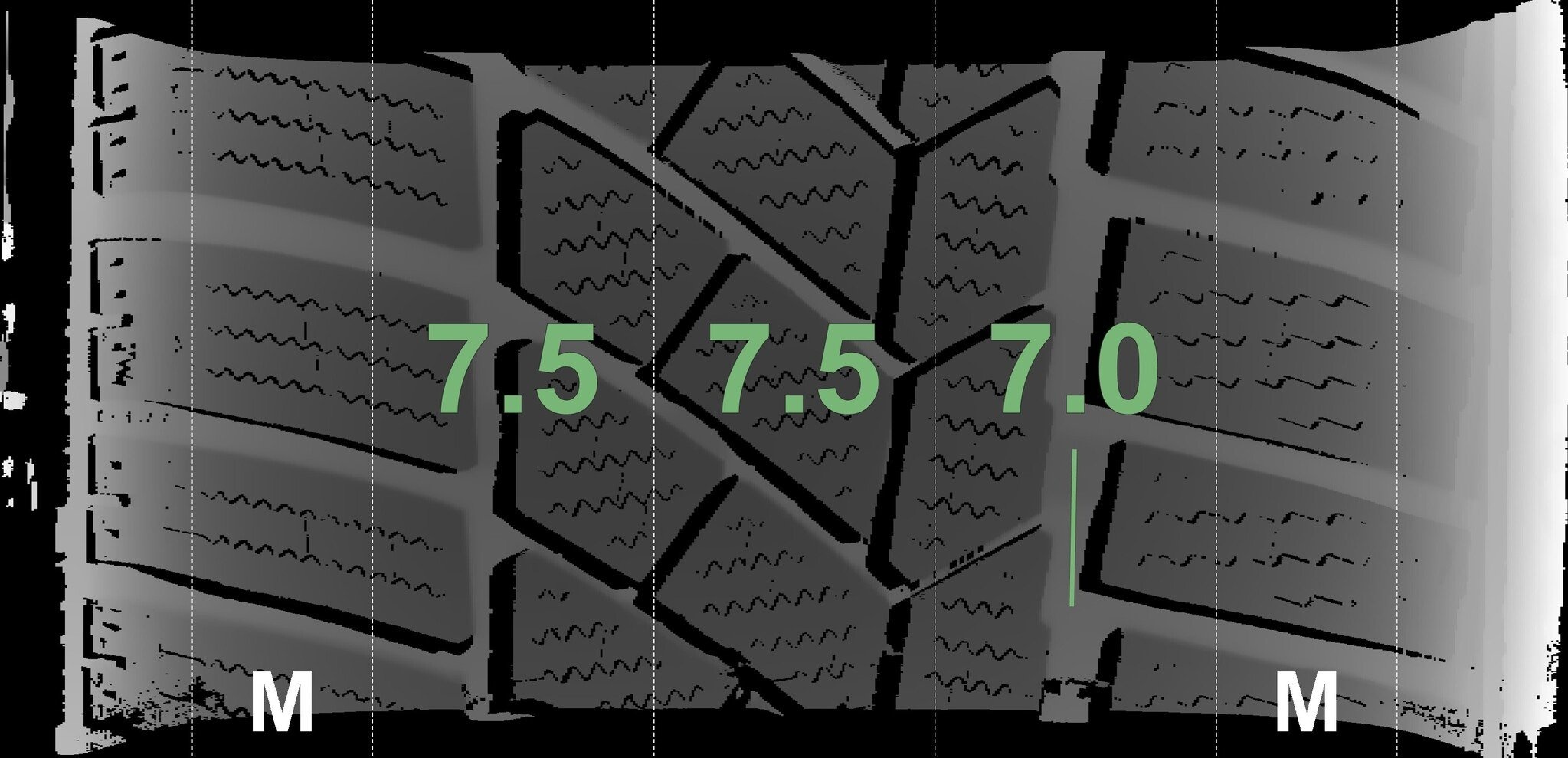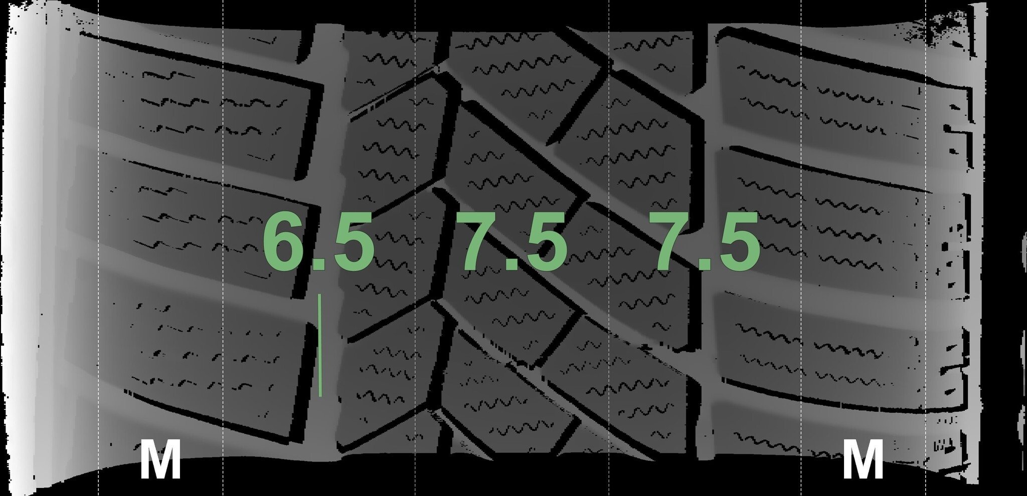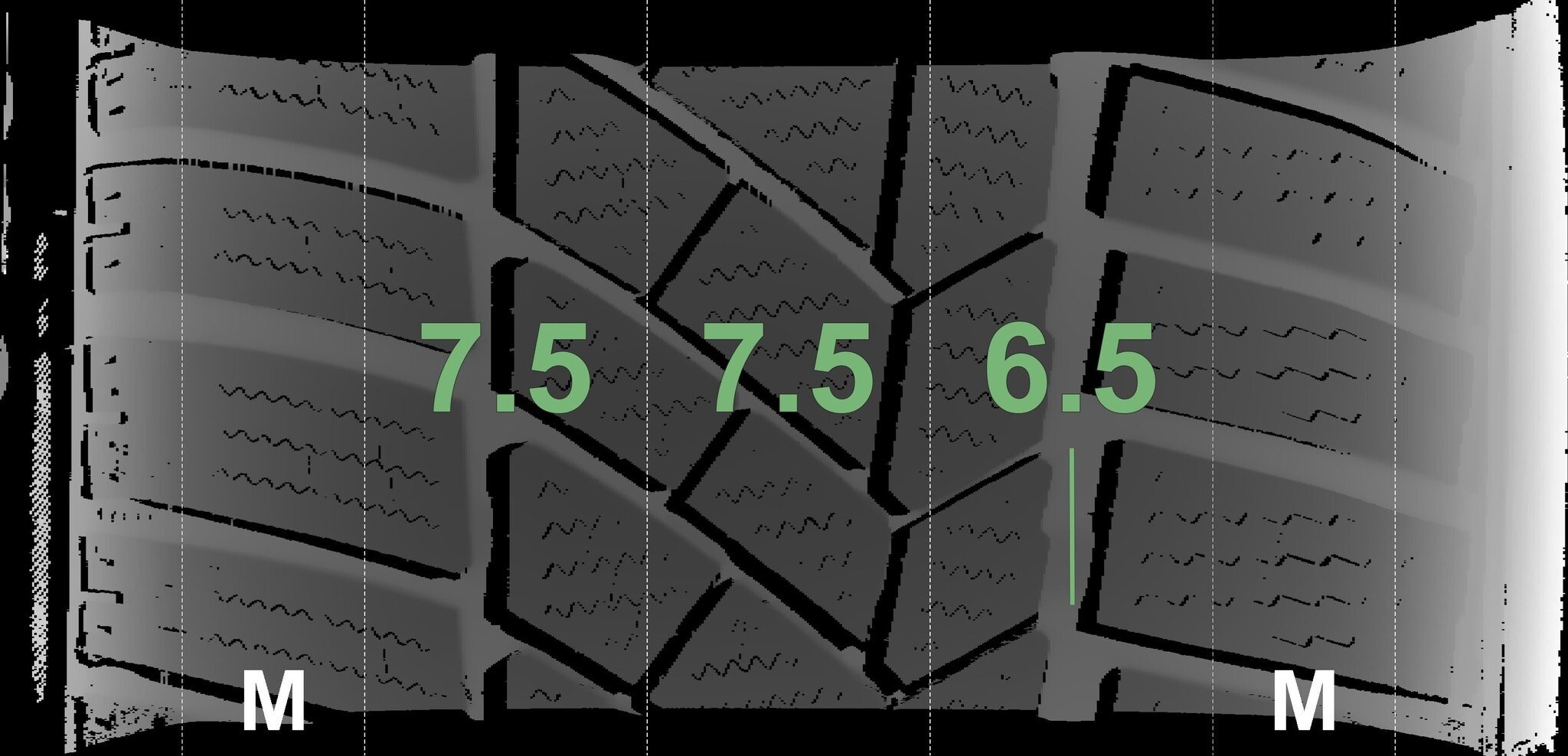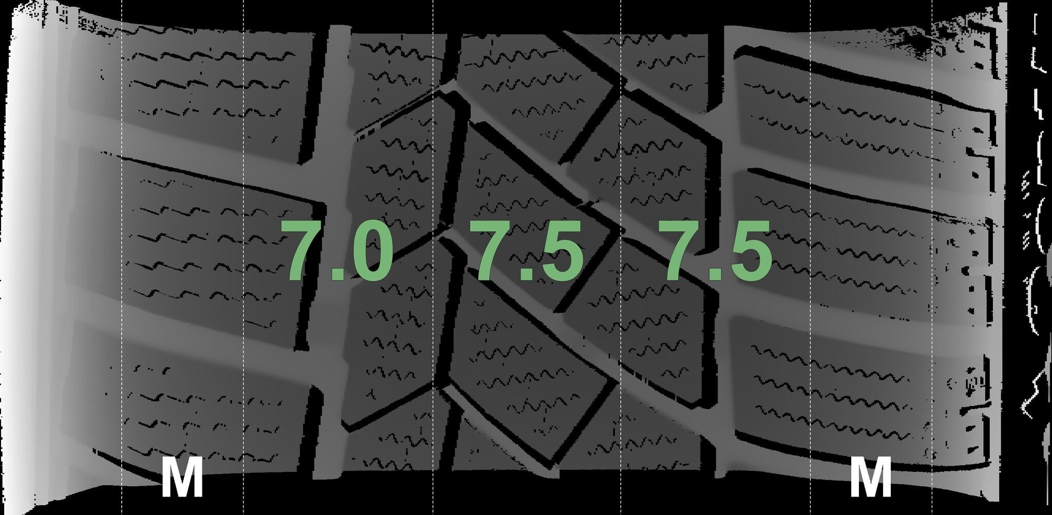 De gemeten profieldieptes en de details van de velgen zijn hierboven weergegeven.