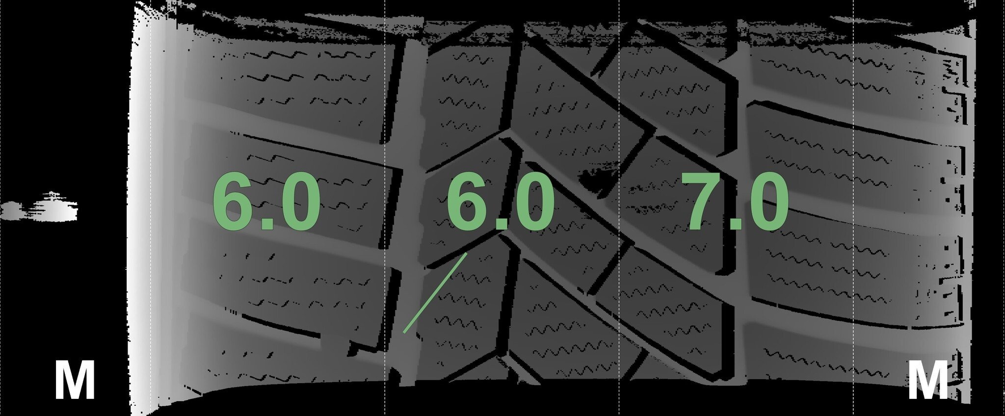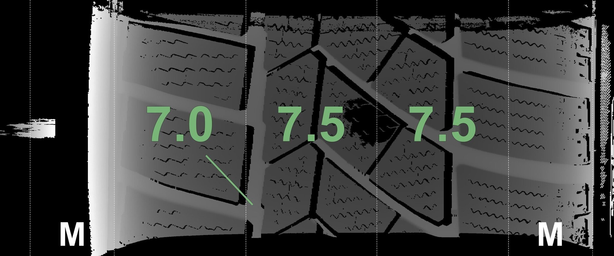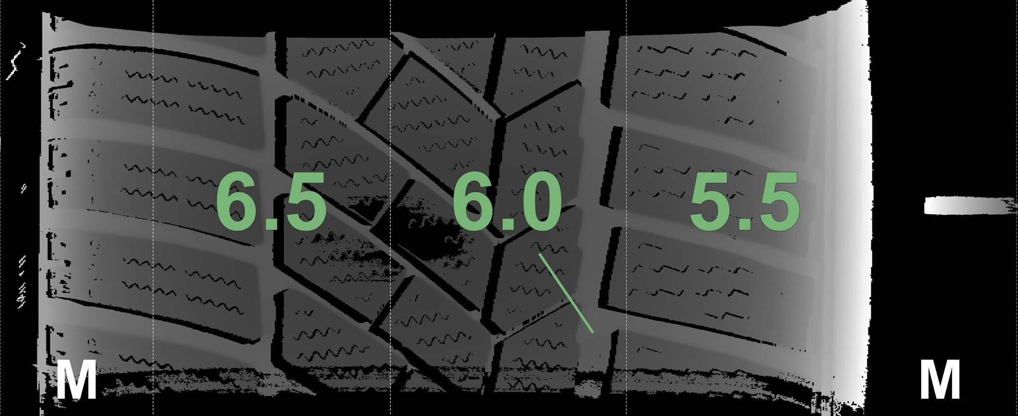 De gemeten profieldieptes en de details van de velgen zijn hierboven weergegeven.