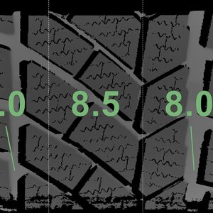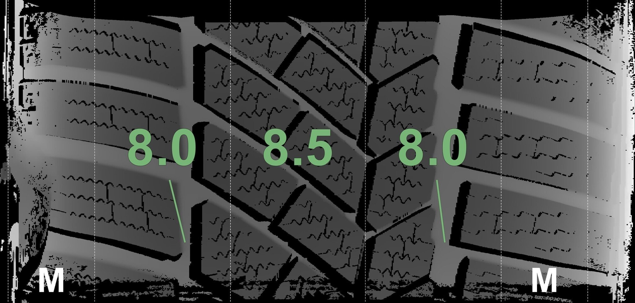 De gemeten profieldieptes en de details van de velgen zijn hierboven weergegeven.