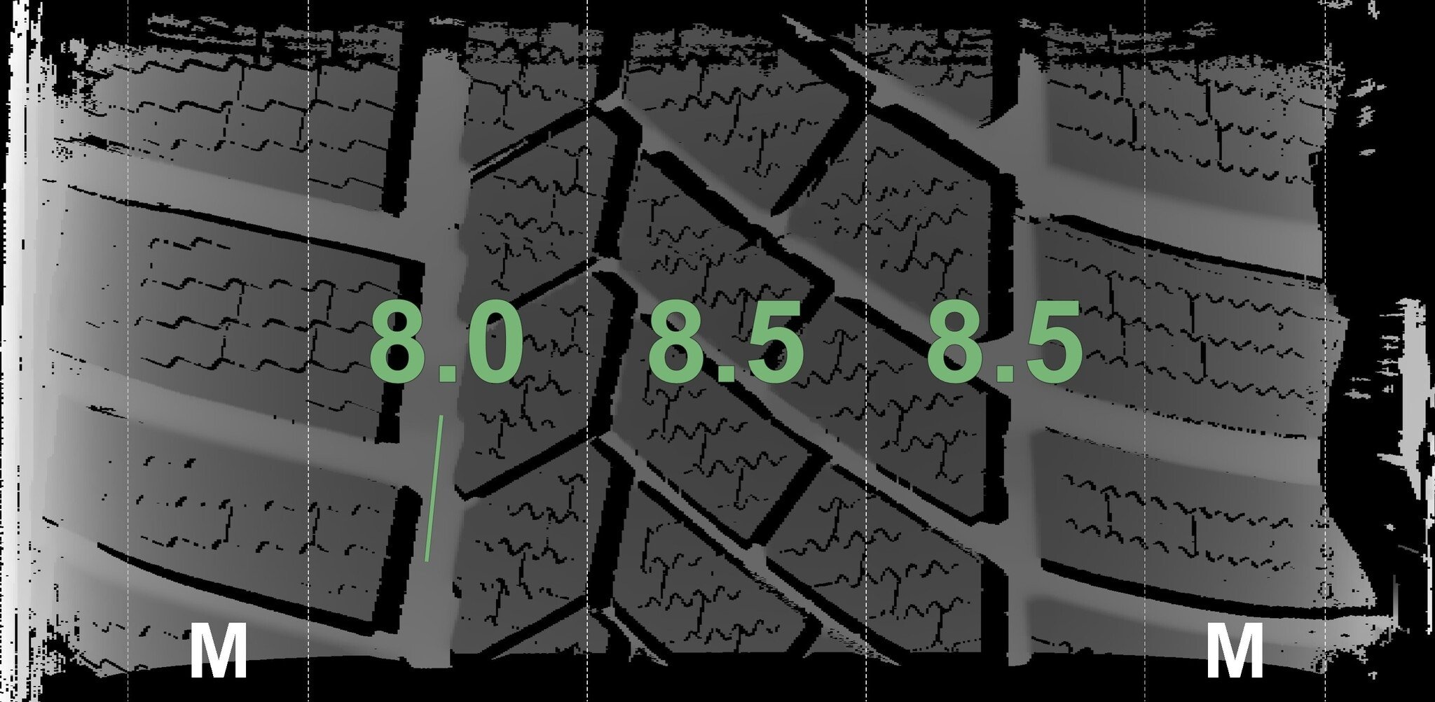 | Conditie | Profieldiepte | DOT | Rechts Voor | Nieuw | 8.2 mm | 2520 |