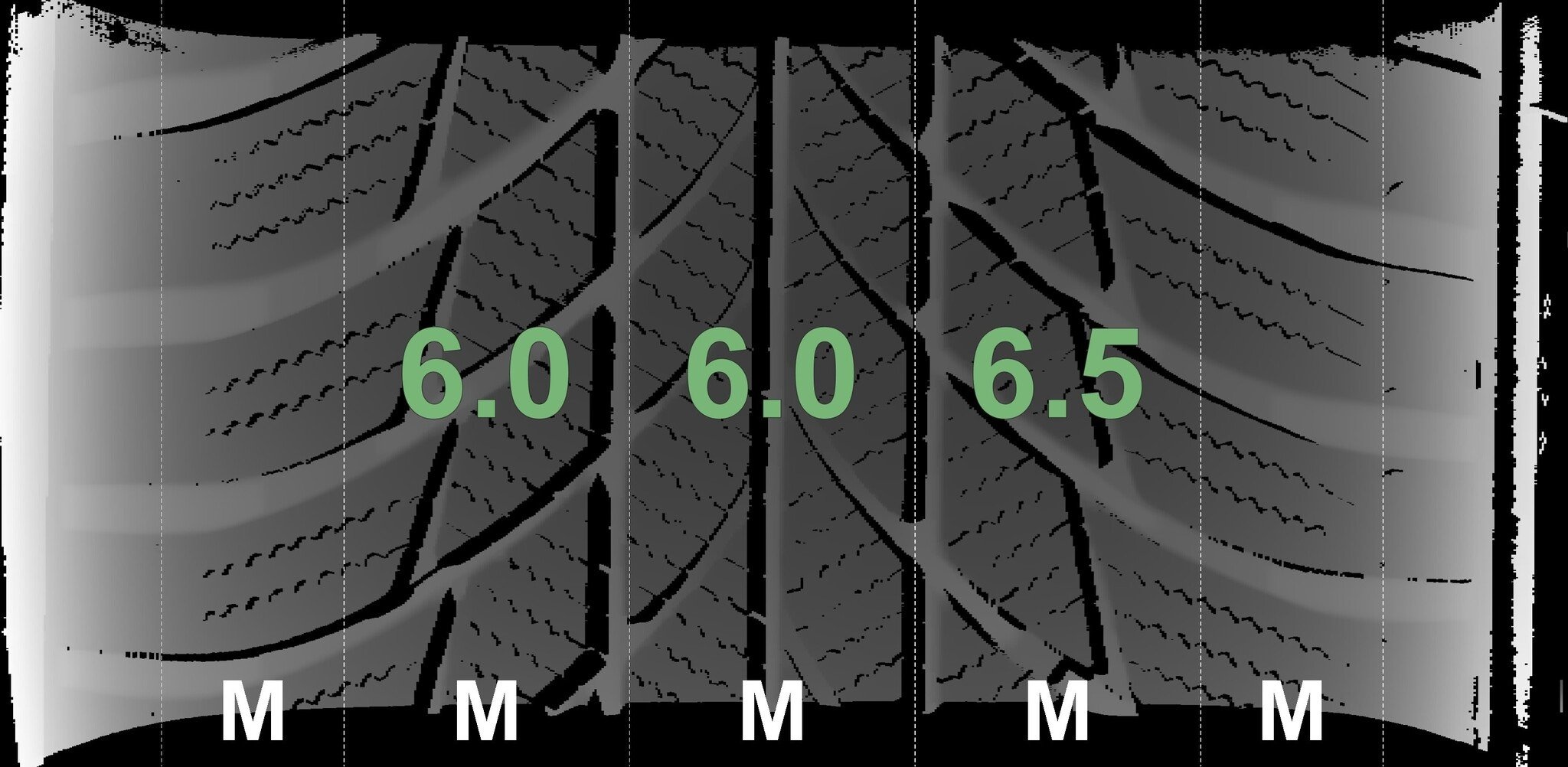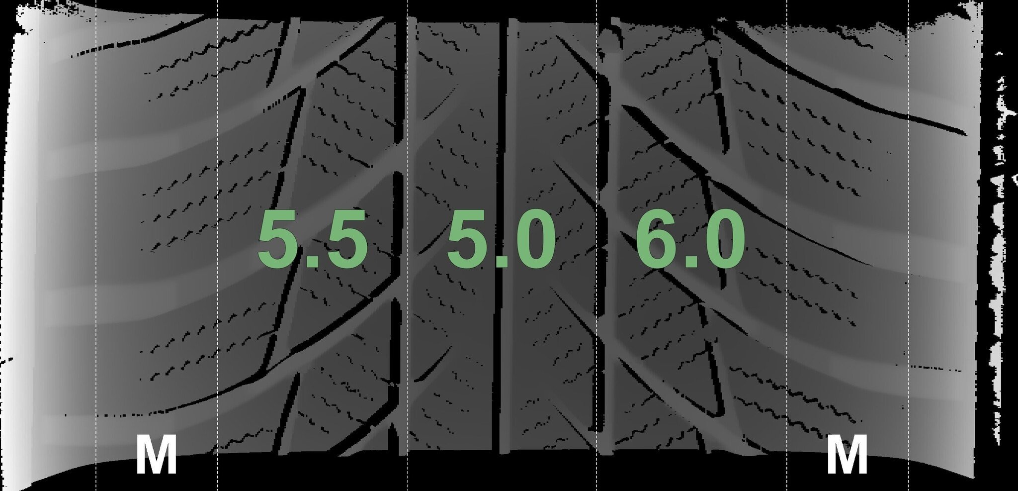 De gemeten profieldieptes en de details van de velgen zijn hierboven weergegeven.