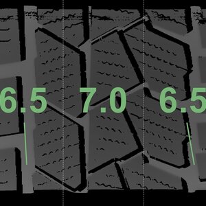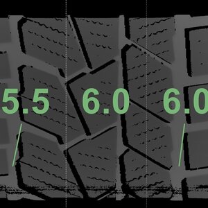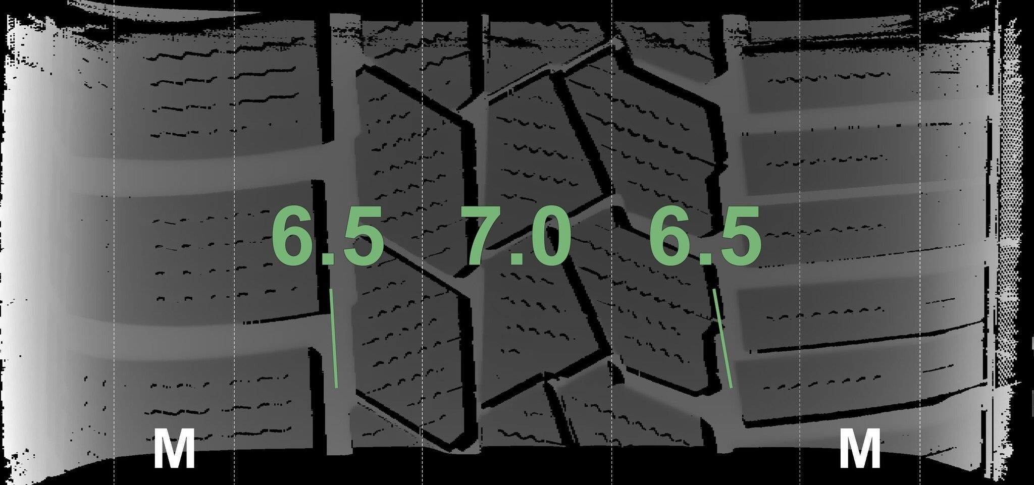 De gemeten profieldieptes en de details van de velgen zijn hierboven weergegeven.
