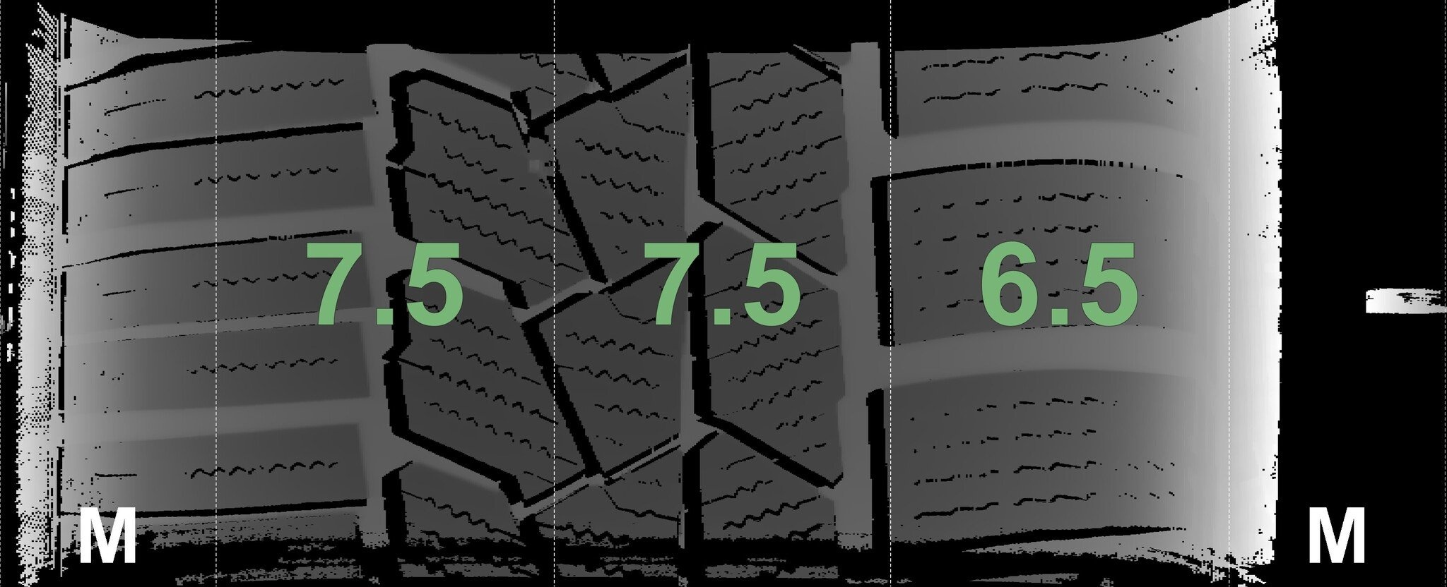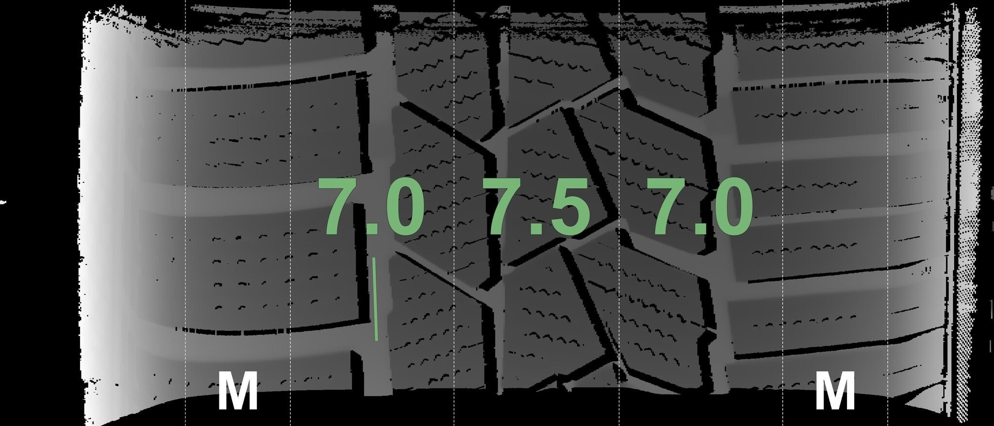 De gemeten profieldieptes en de details van de velgen zijn hierboven weergegeven.