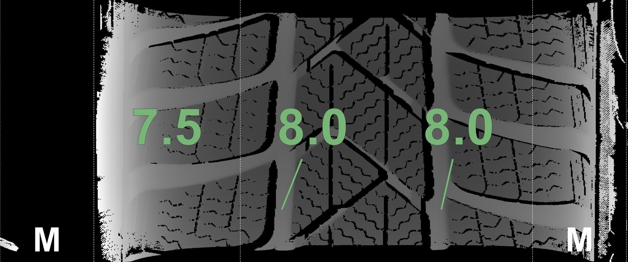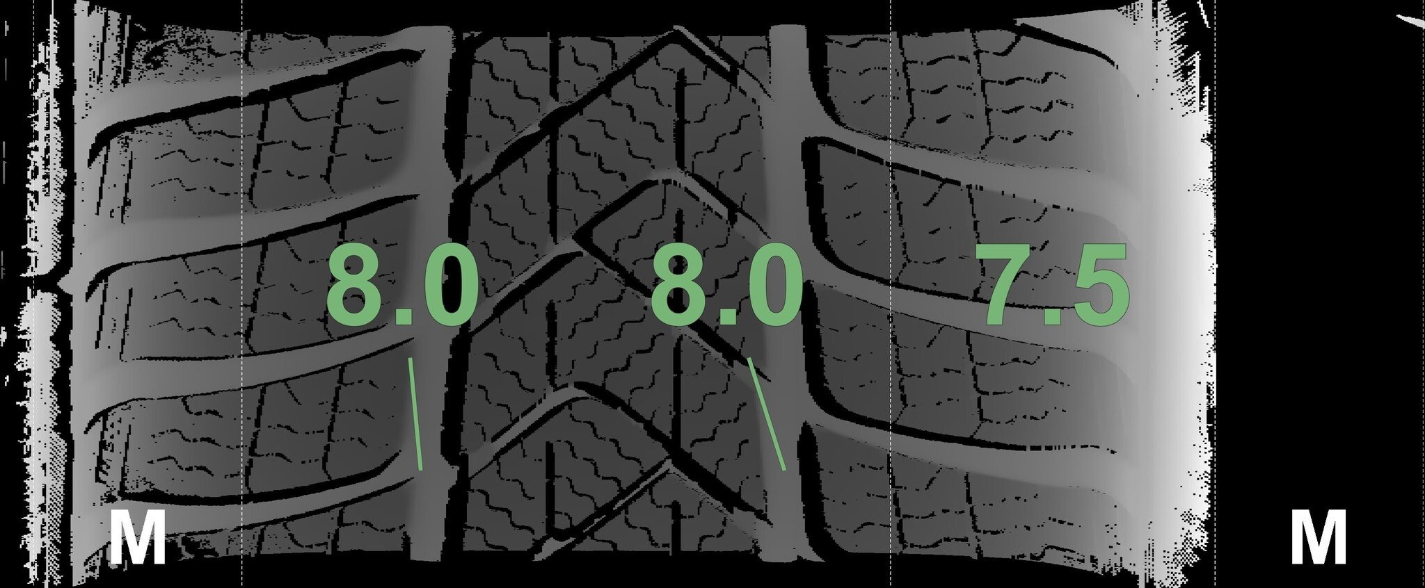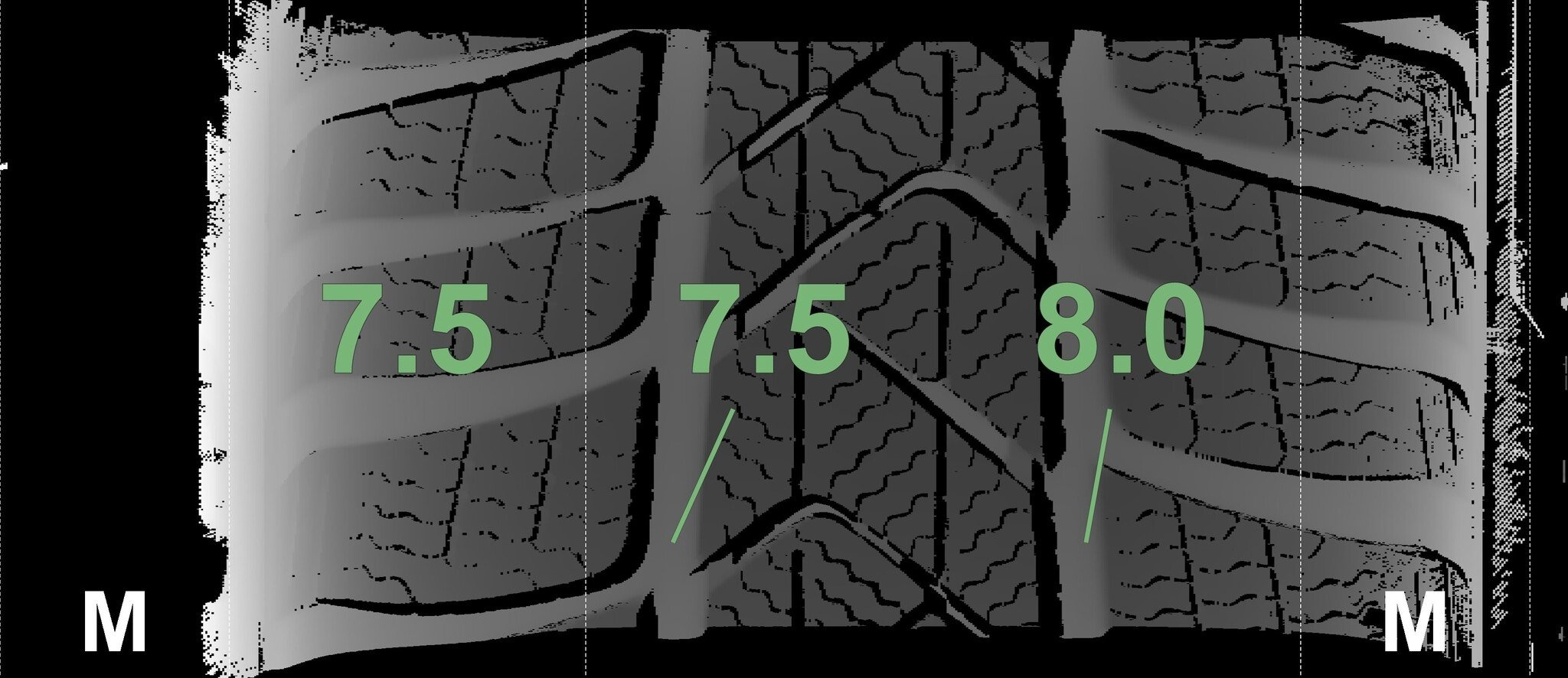 De gemeten profieldieptes en de details van de velgen zijn hierboven weergegeven.