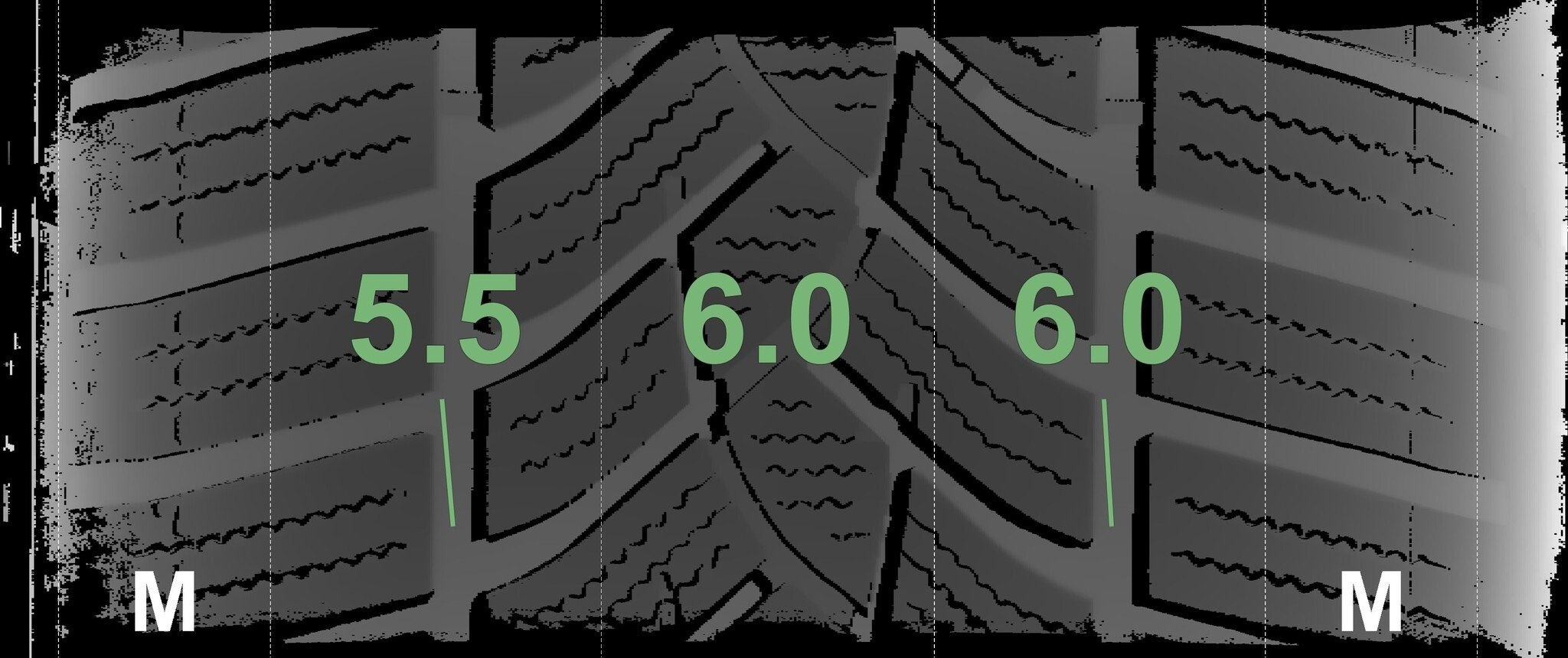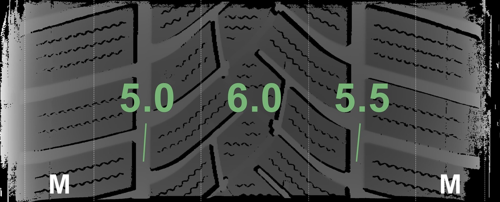 De gemeten profieldieptes en de details van de velgen zijn hierboven weergegeven.