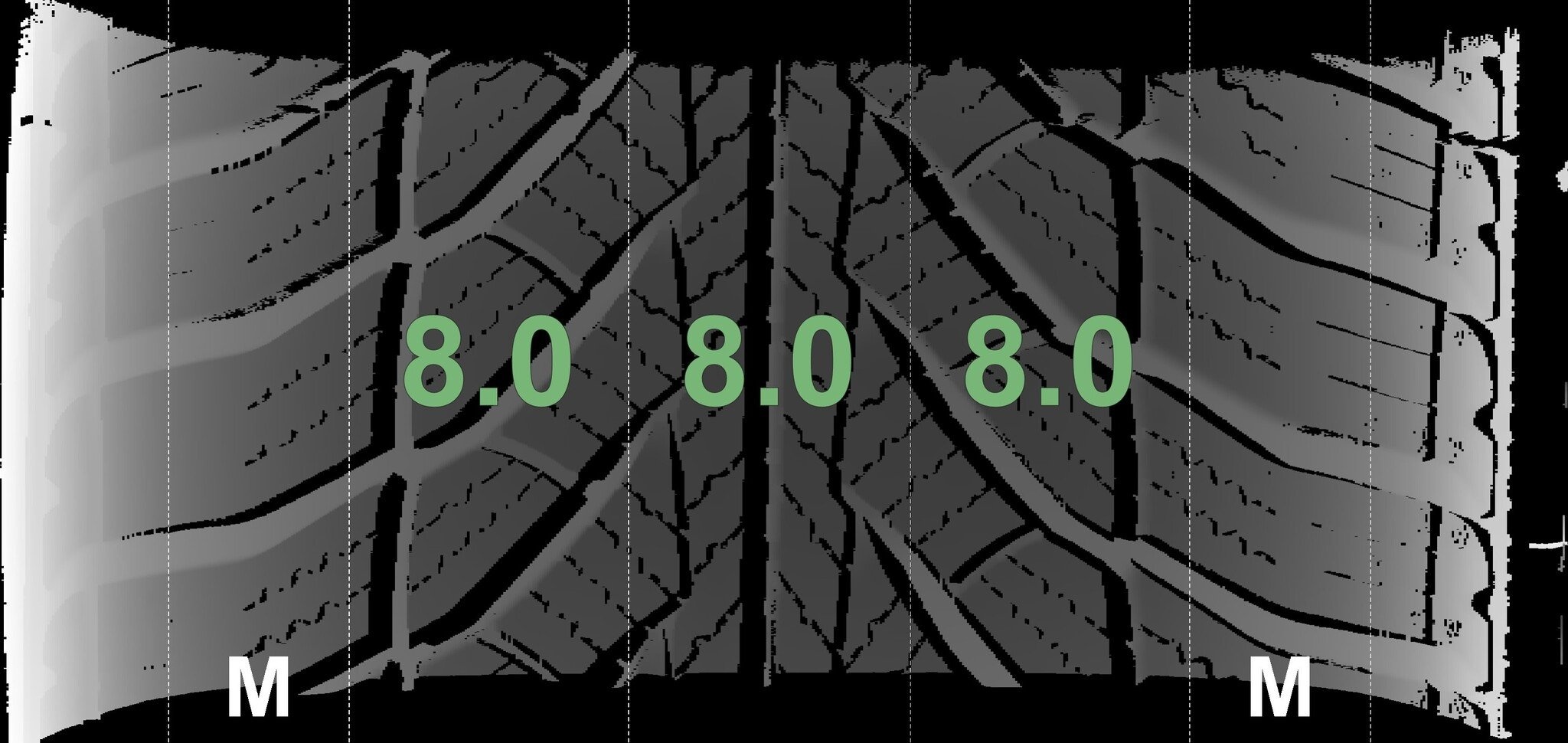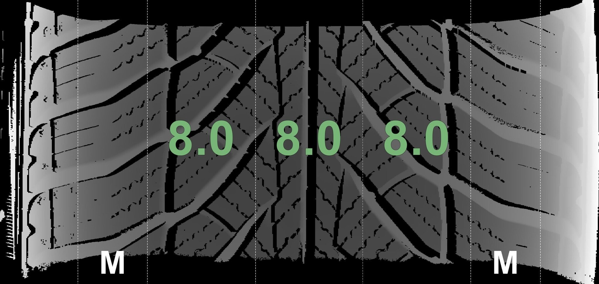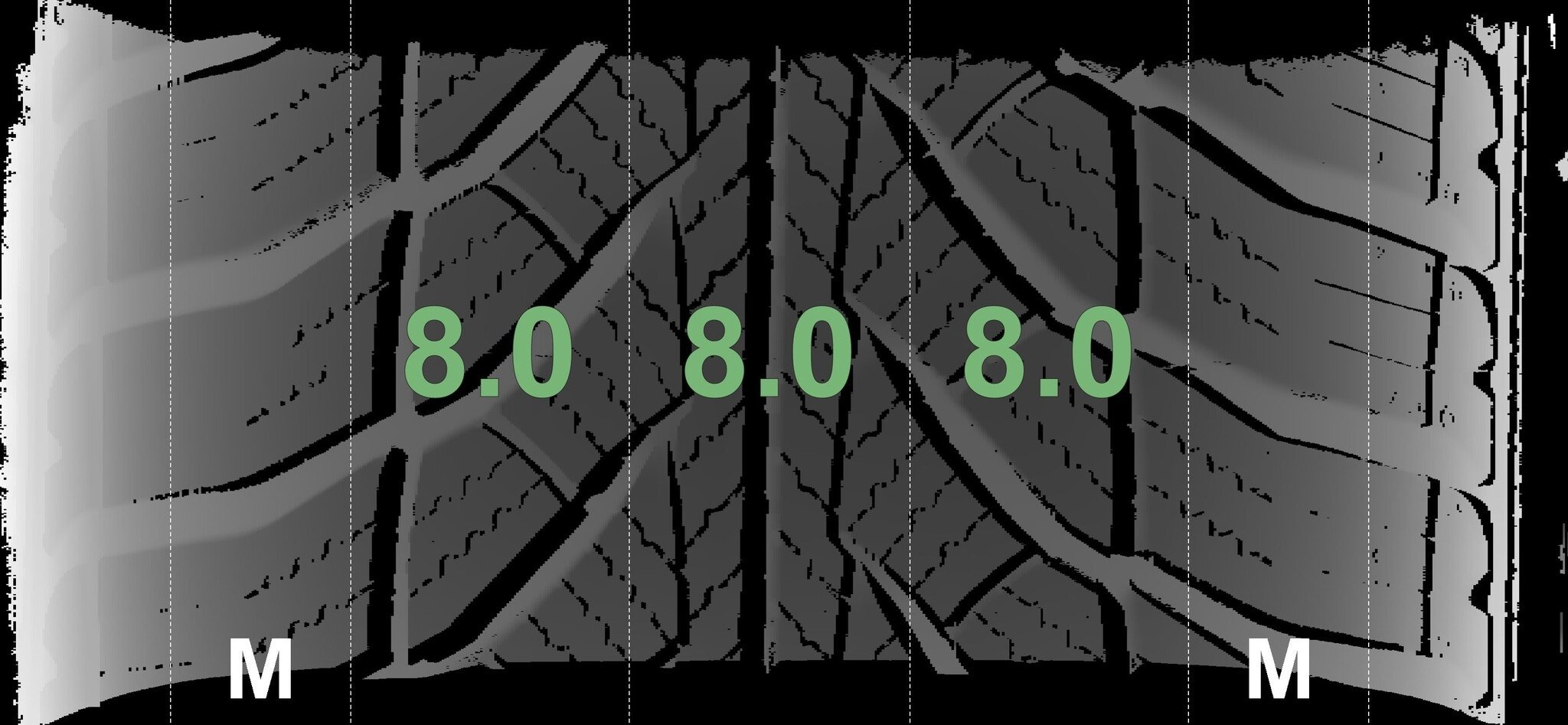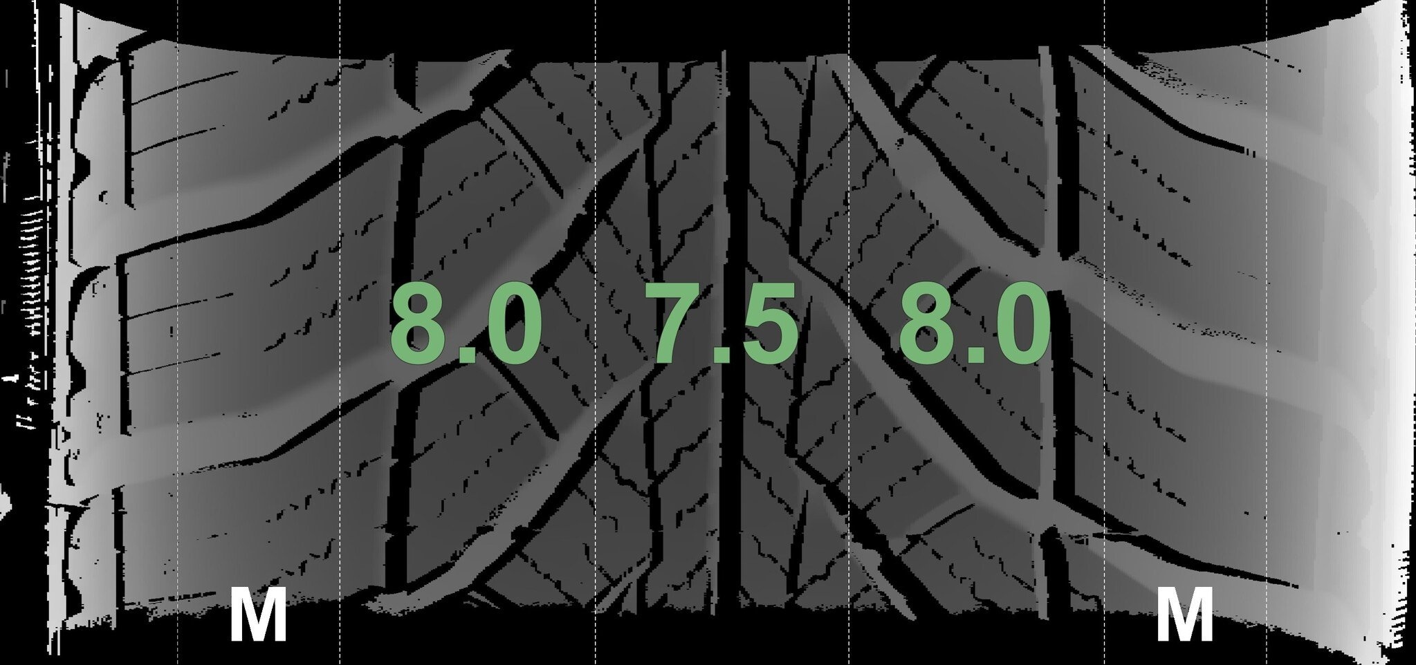 De gemeten profieldieptes en de details van de velgen zijn hierboven weergegeven.