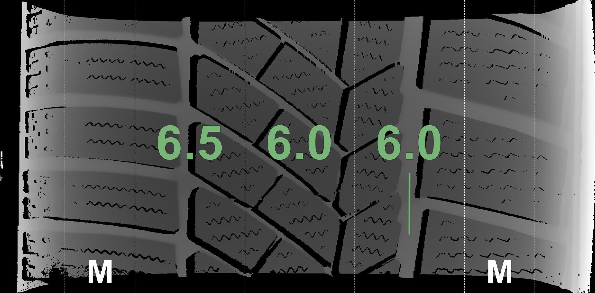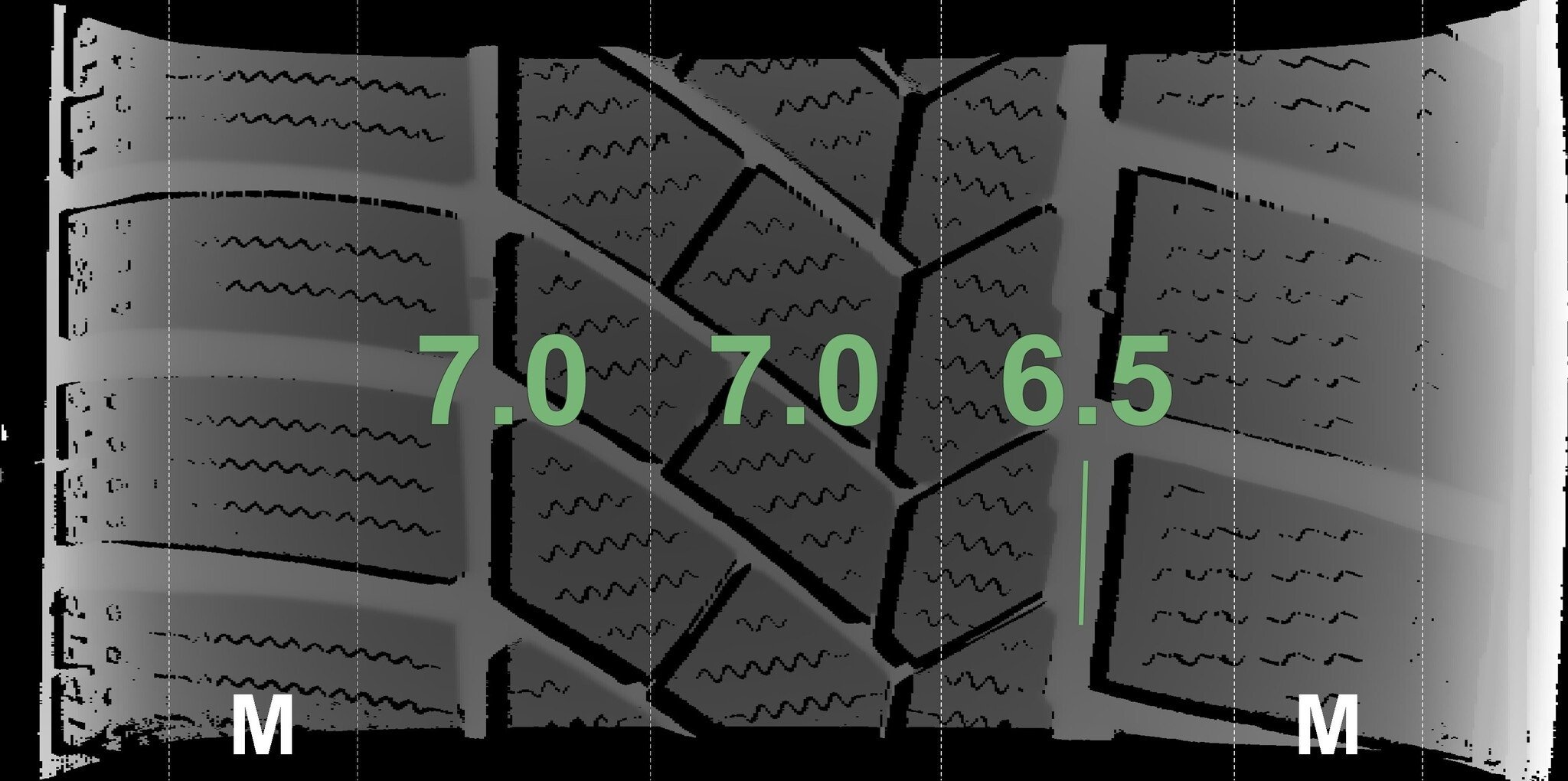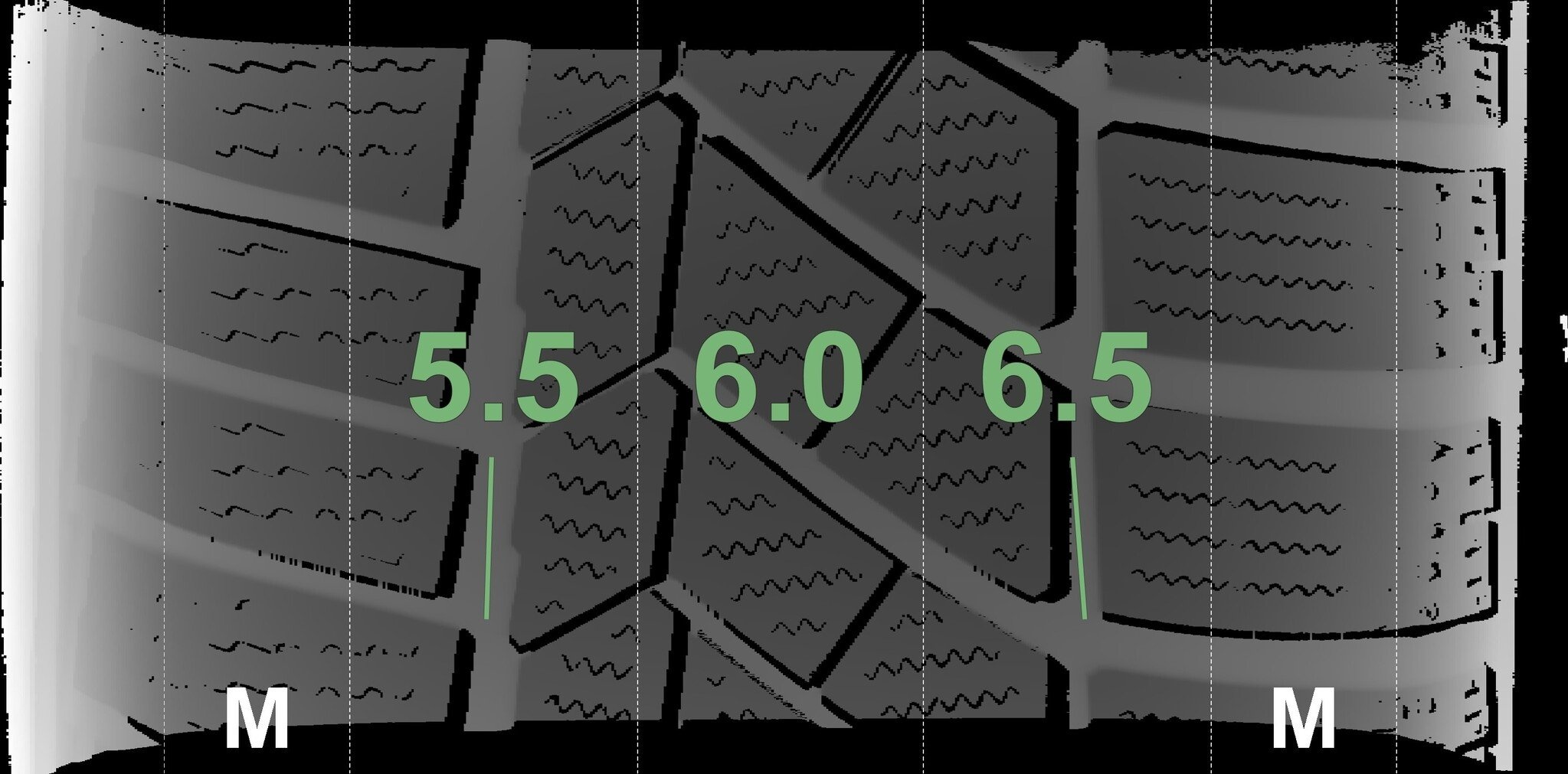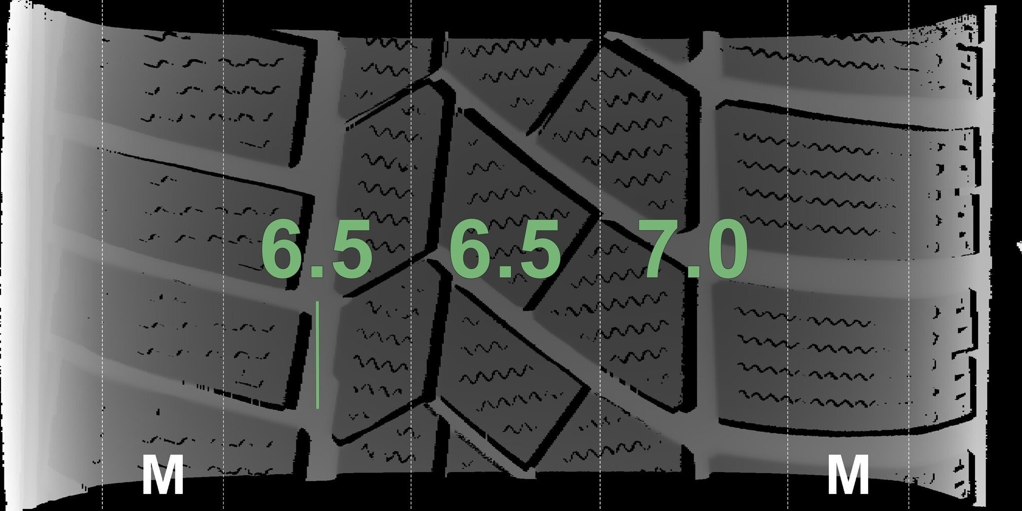 De gemeten profieldieptes en de details van de velgen zijn hierboven weergegeven.