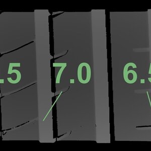 De gemeten profieldieptes en de details van de velgen zijn hierboven weergegeven.