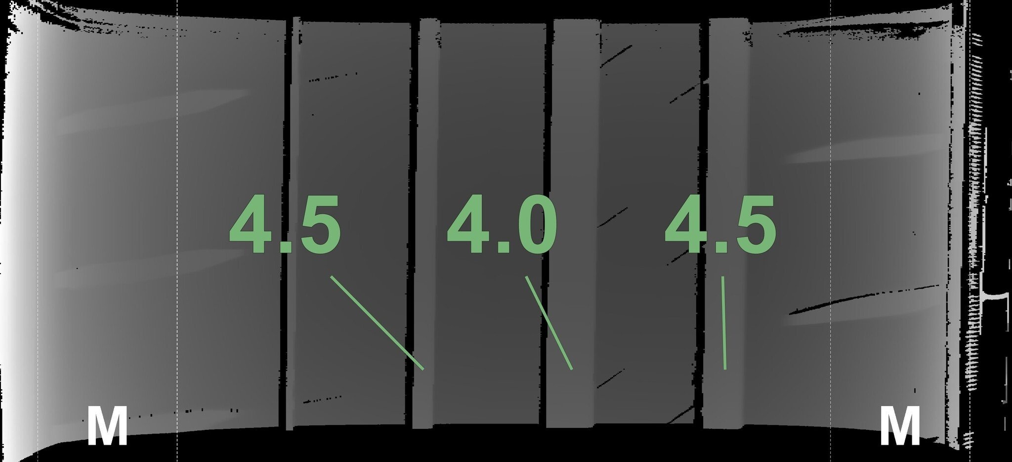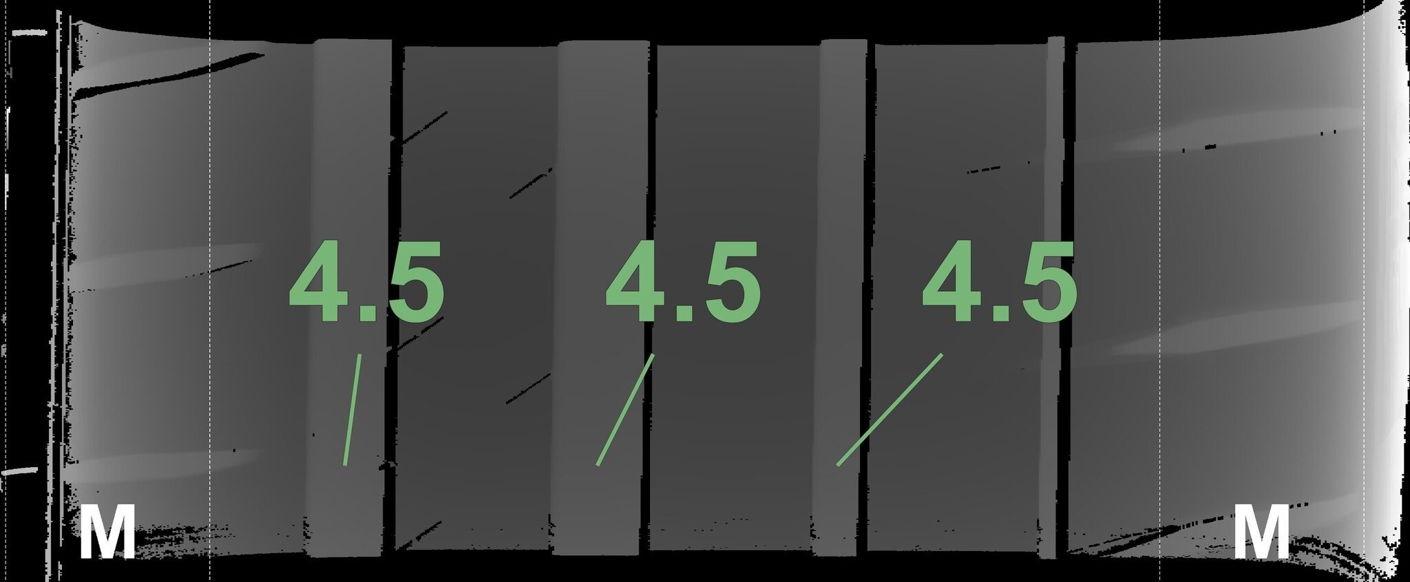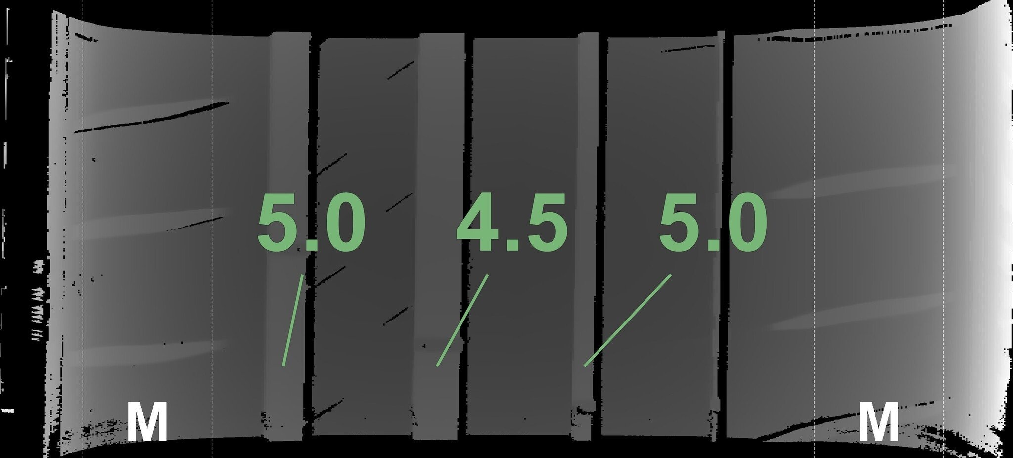 De gemeten profieldieptes en de details van de velgen zijn hierboven weergegeven.