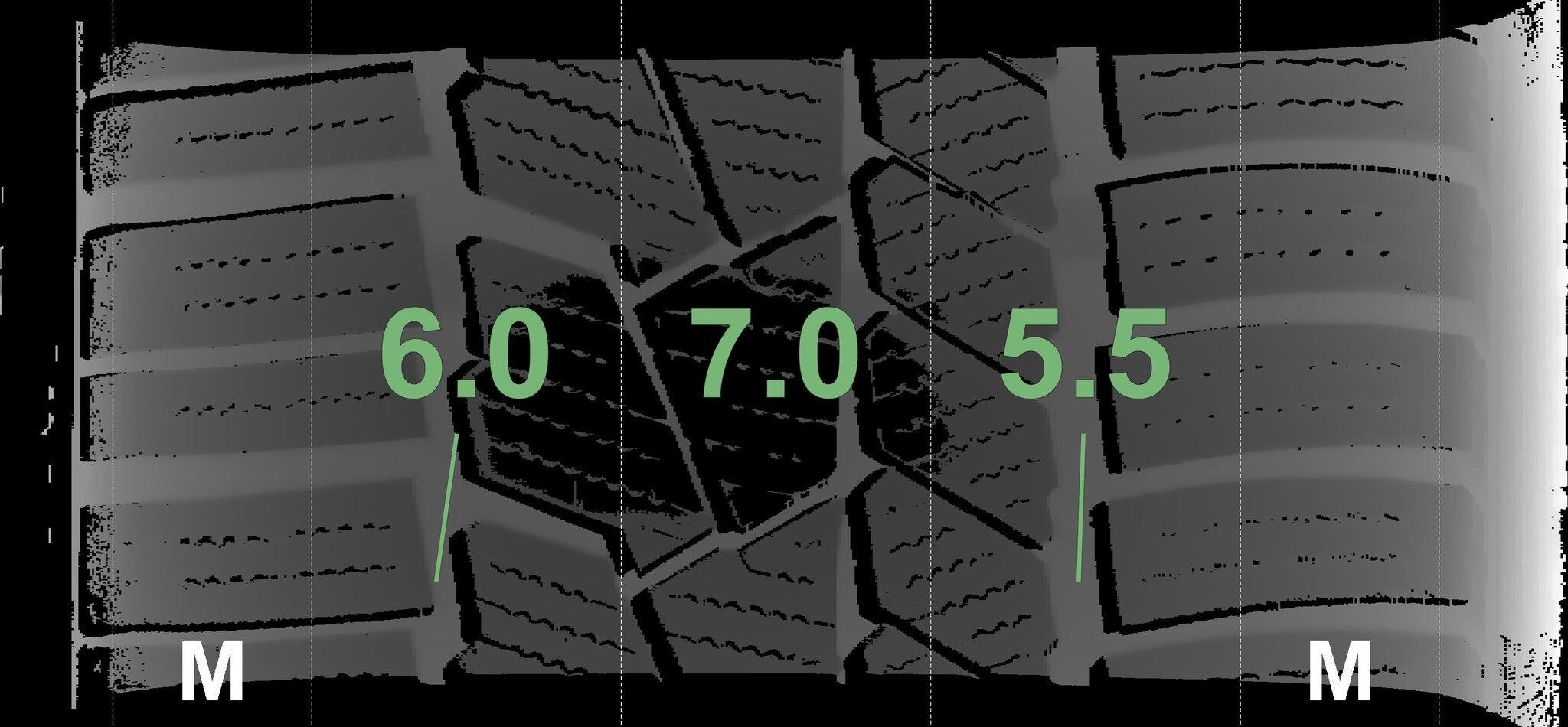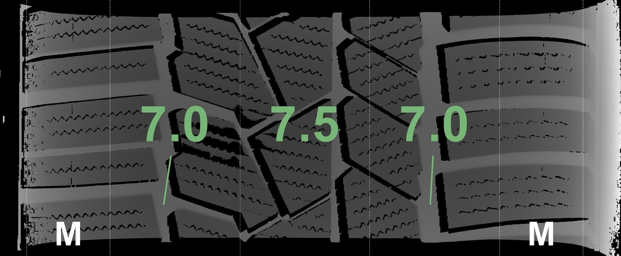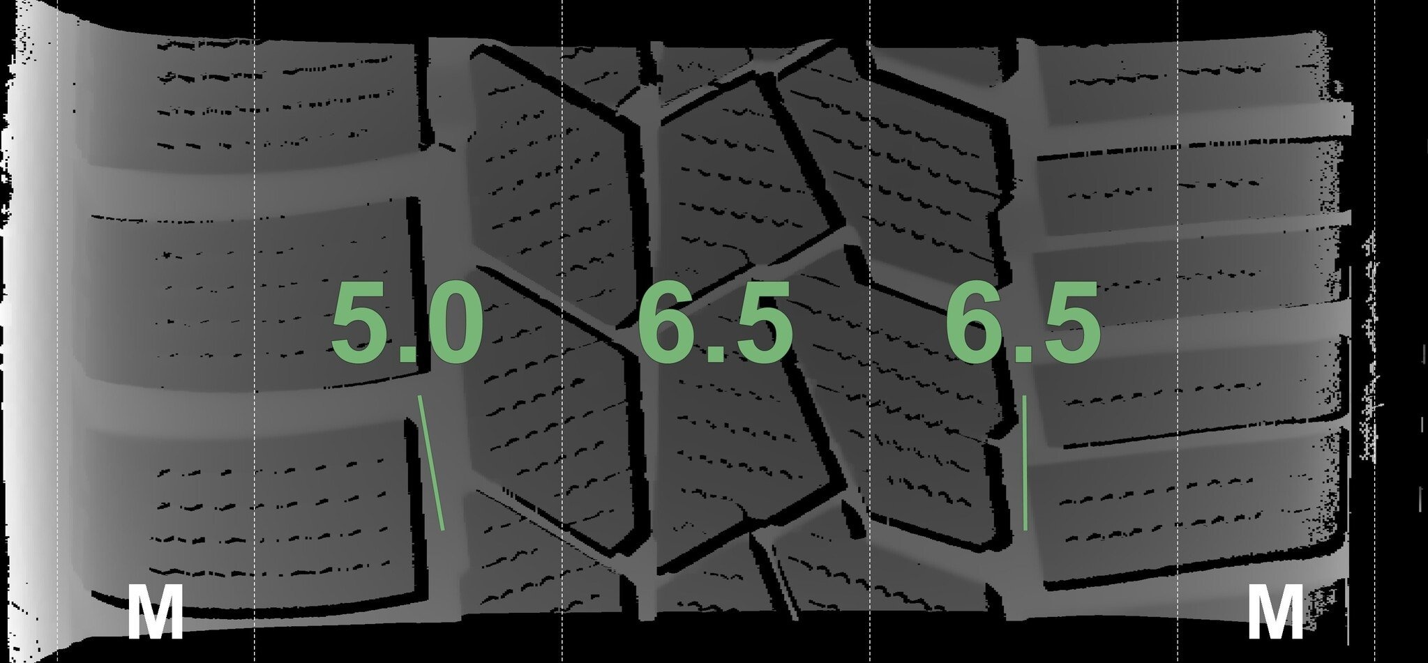 De gemeten profieldieptes en de details van de velgen zijn hierboven weergegeven.