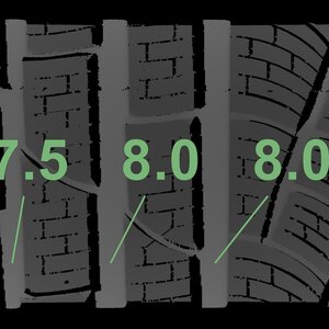 De gemeten profieldieptes en de details van de velgen zijn hierboven weergegeven.
