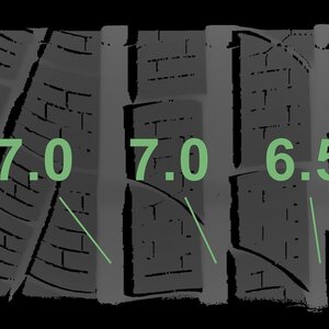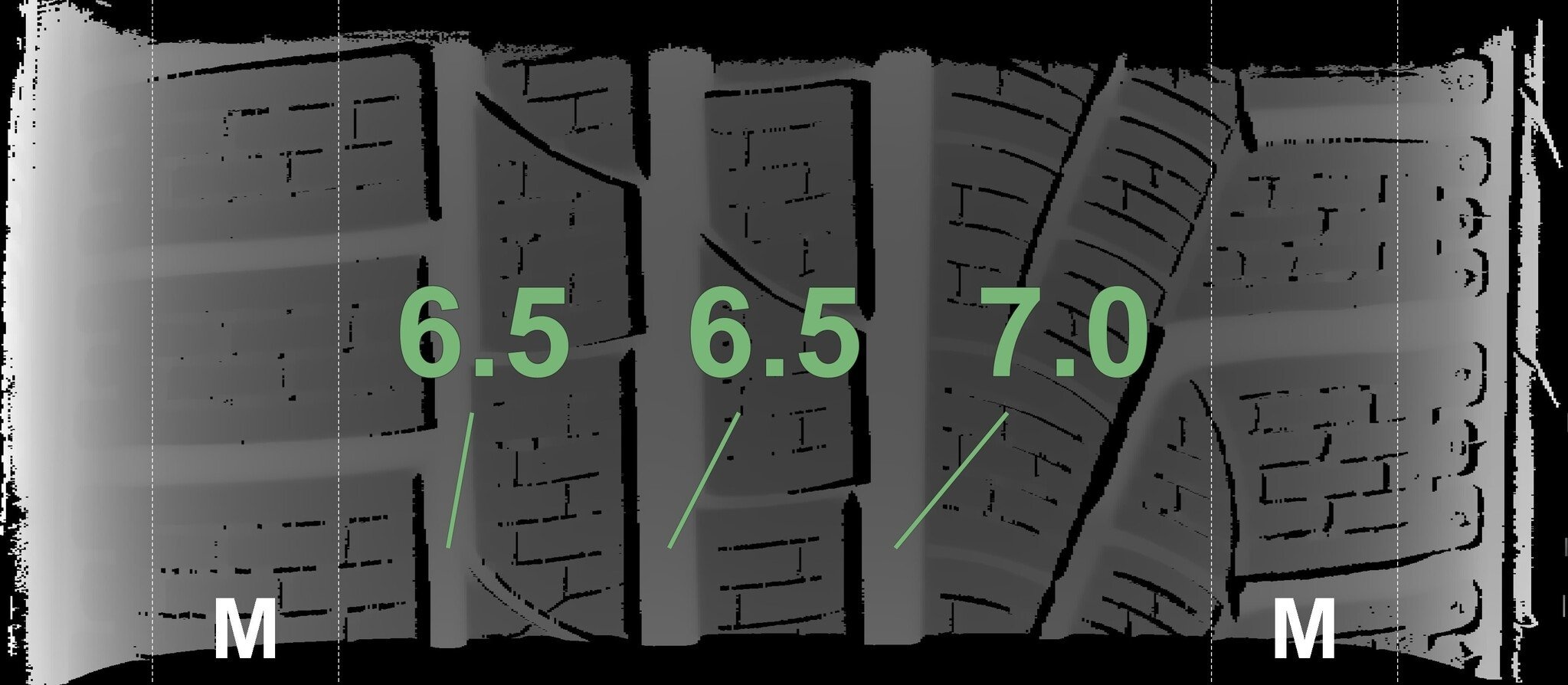 De gemeten profieldieptes en de details van de velgen zijn hierboven weergegeven.