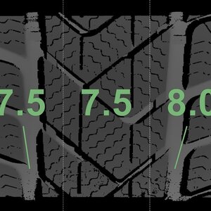 De gemeten profieldieptes en de details van de velgen zijn hierboven weergegeven.