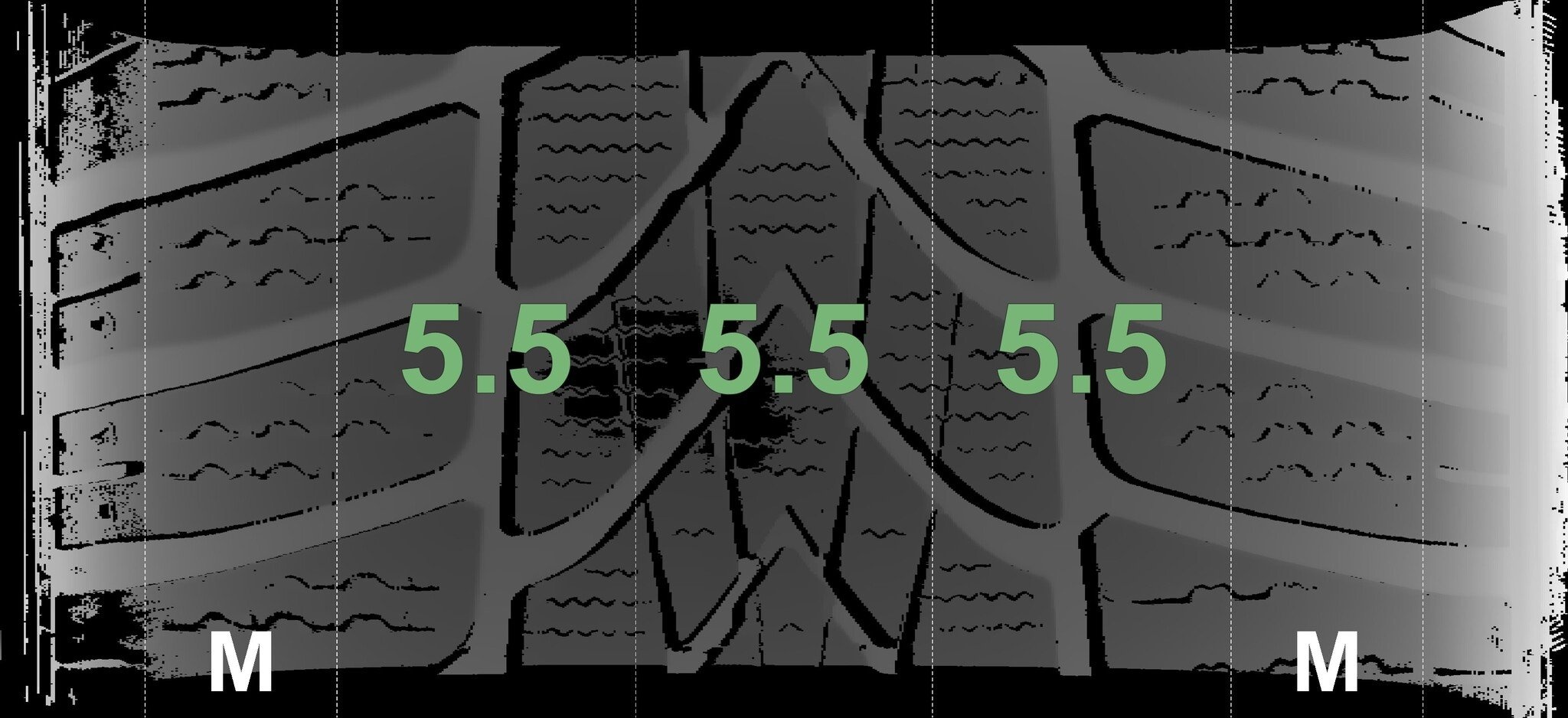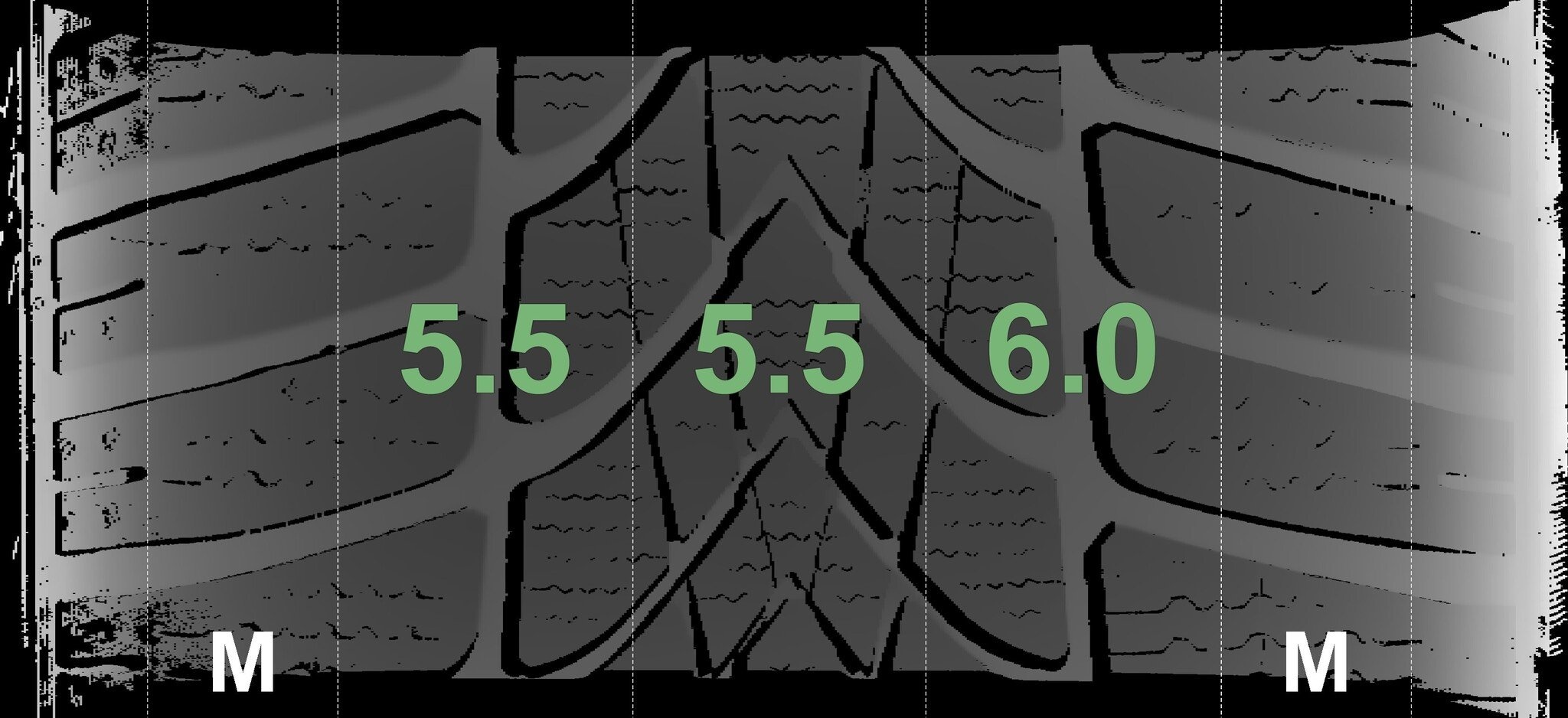 De gemeten profieldieptes en de details van de velgen zijn hierboven weergegeven.