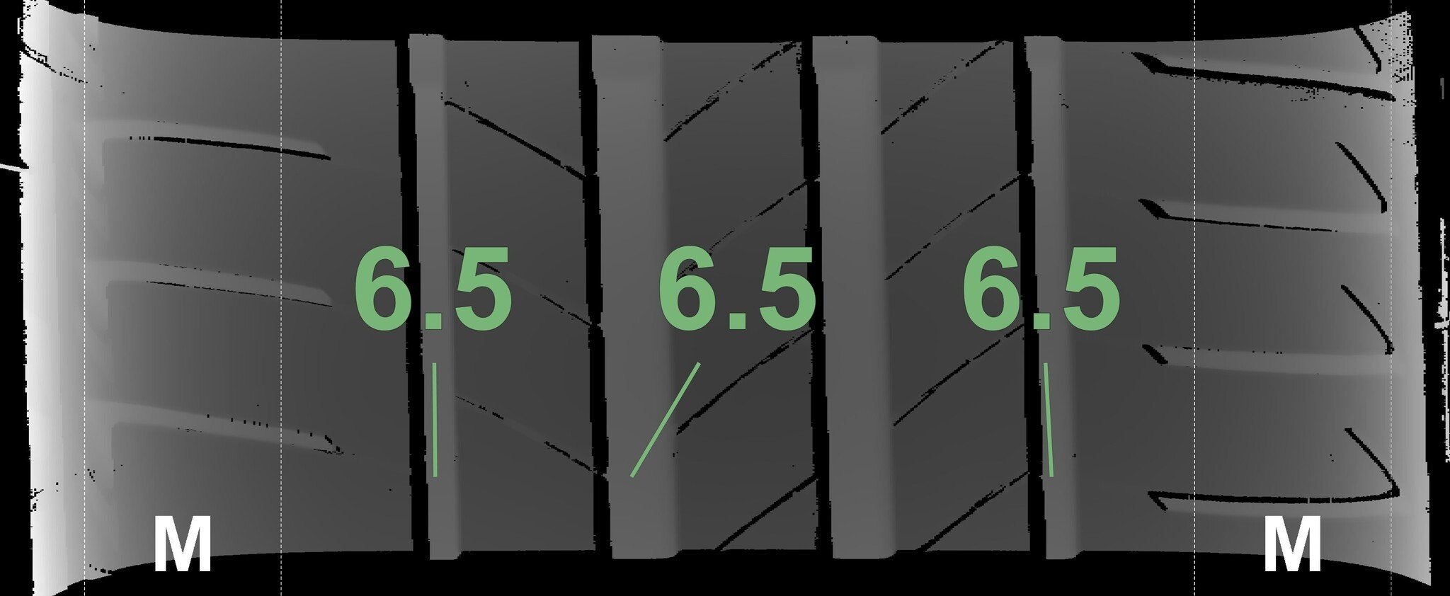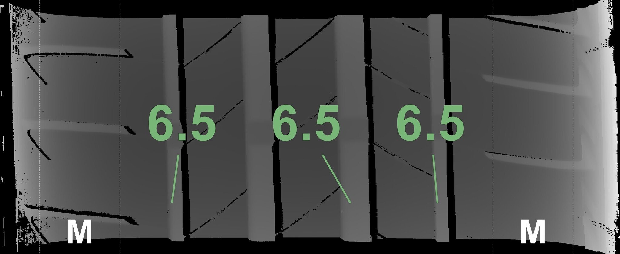 De gemeten profieldieptes en de details van de velgen zijn hierboven weergegeven.