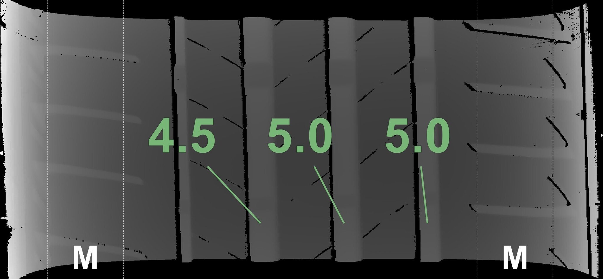 Conditie | Profieldiepte | DOT | Links Voor | Gebruikt | 4.5 mm | 4221 |