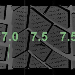 De gemeten profieldieptes en de details van de velgen zijn hierboven weergegeven.