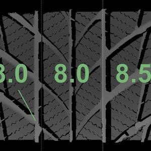 De gemeten profieldieptes en de details van de velgen zijn hierboven weergegeven.