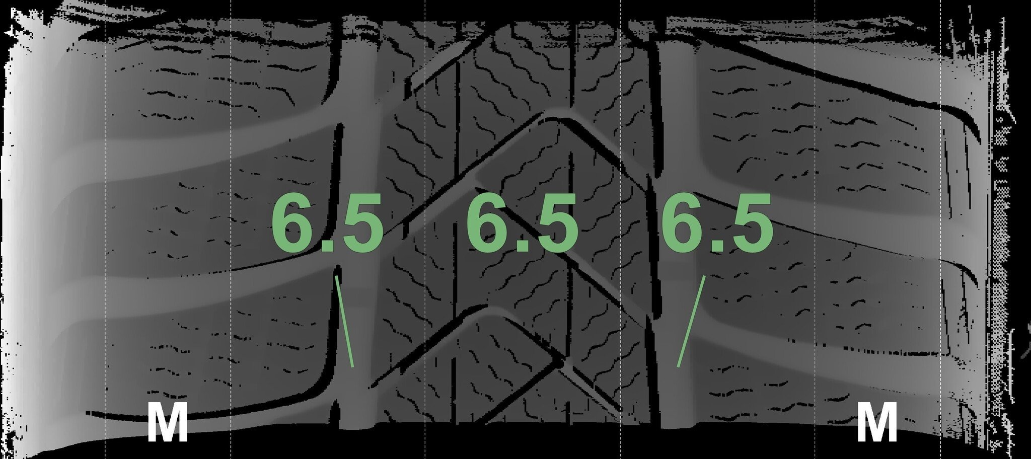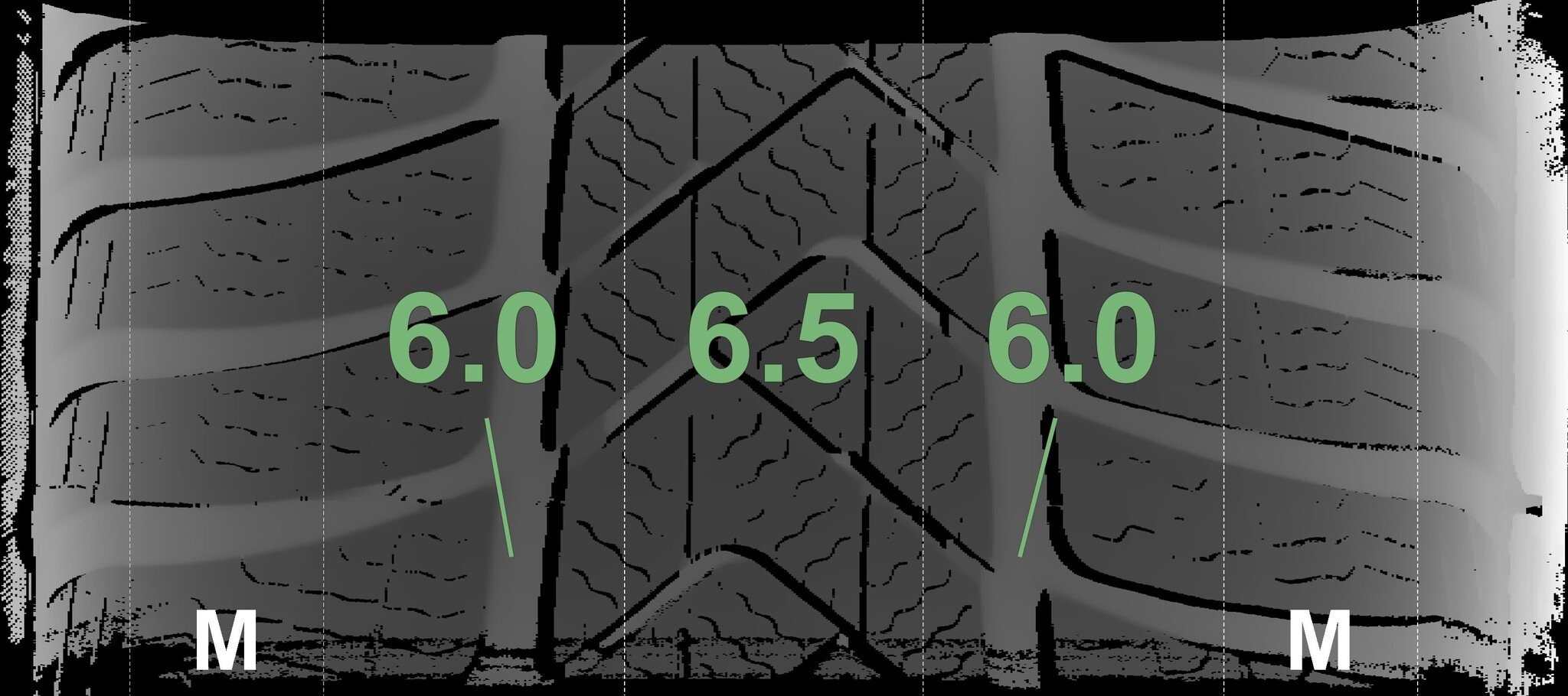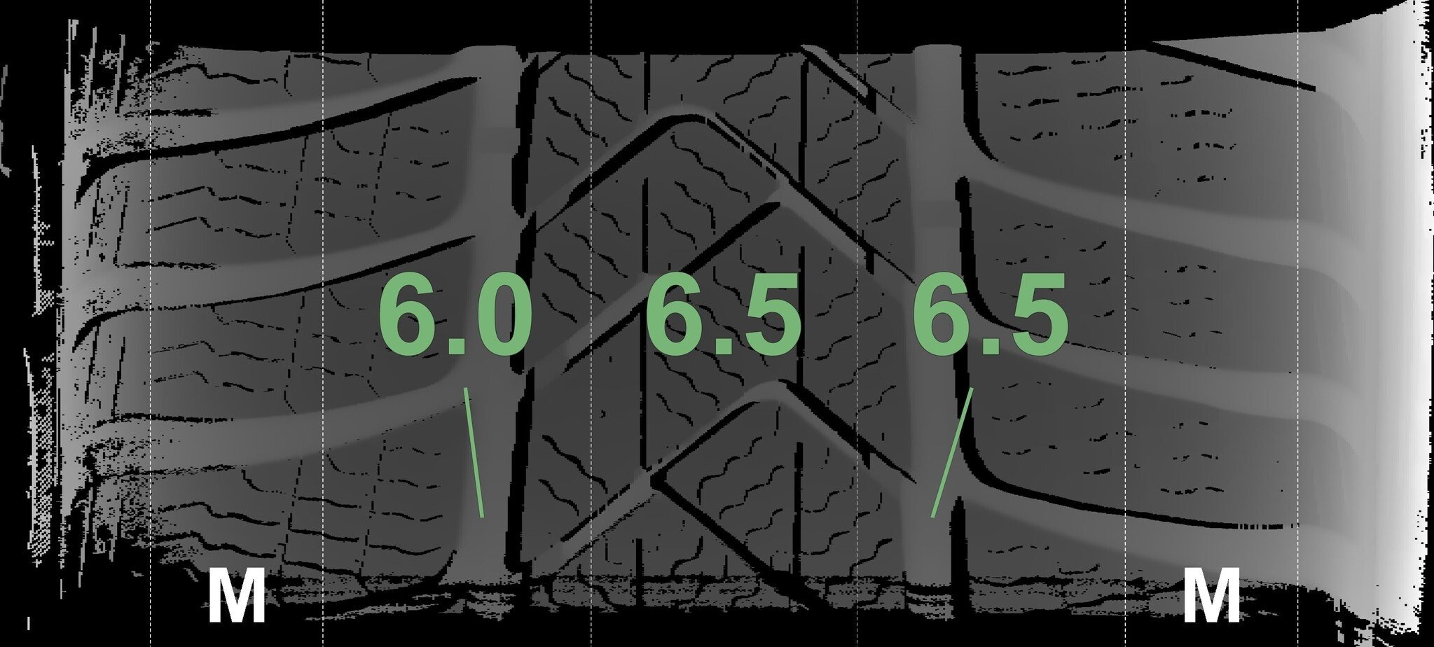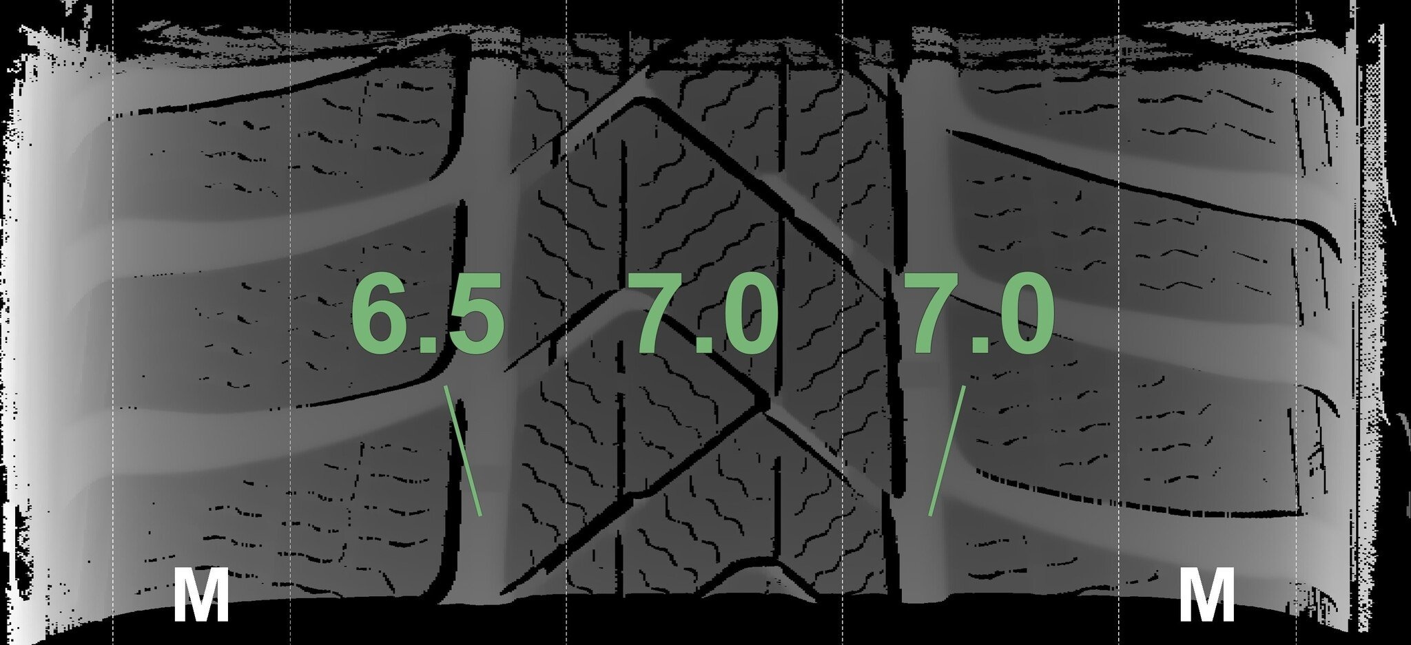 De gemeten profieldieptes en de details van de velgen zijn hierboven weergegeven.