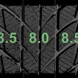 De gemeten profieldieptes en de details van de velgen zijn hierboven weergegeven.