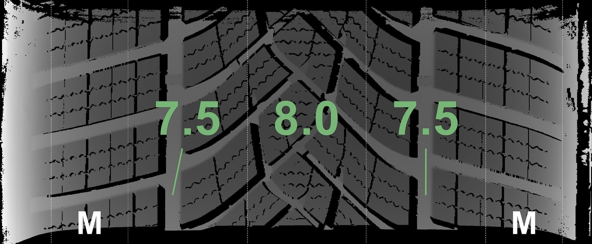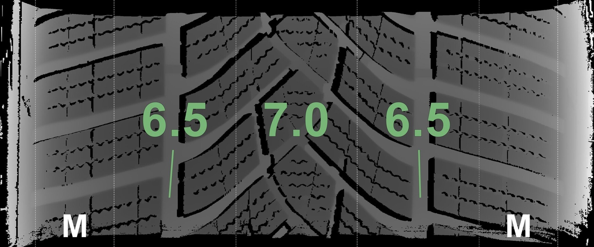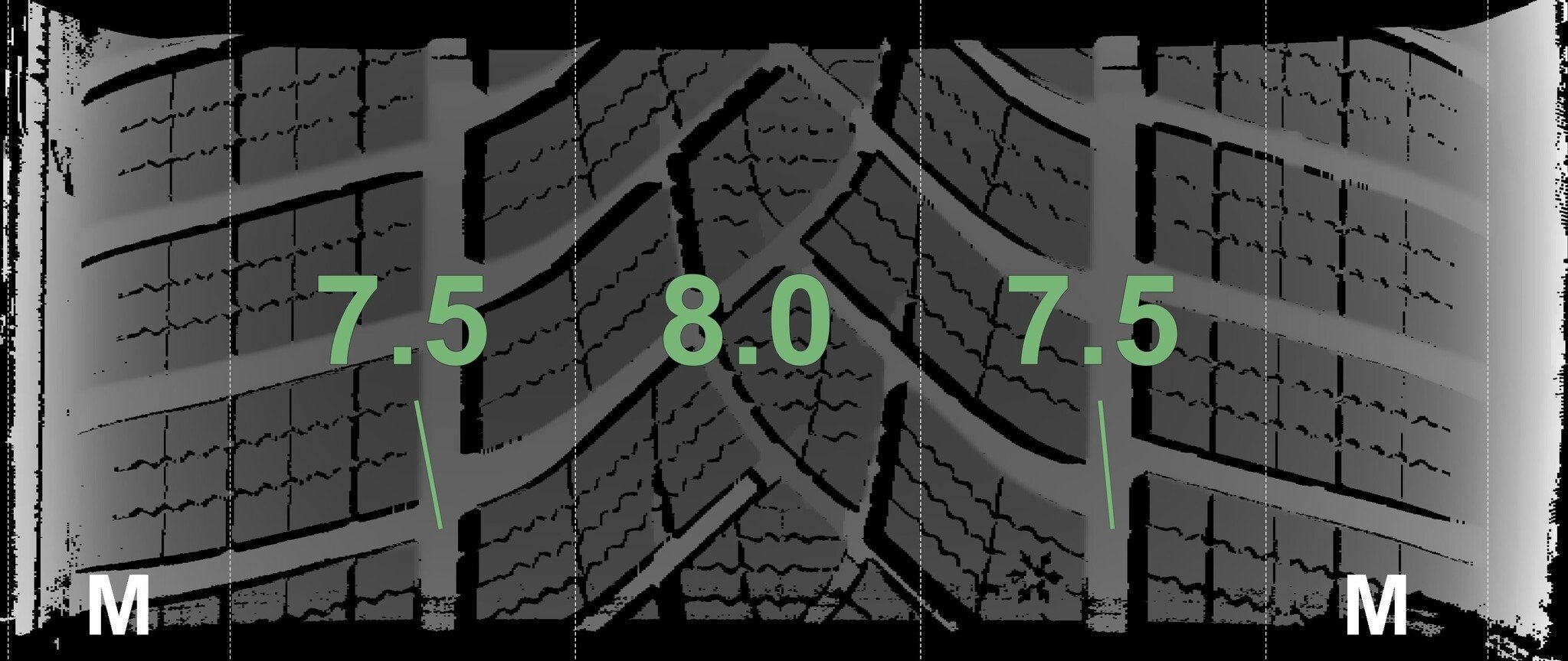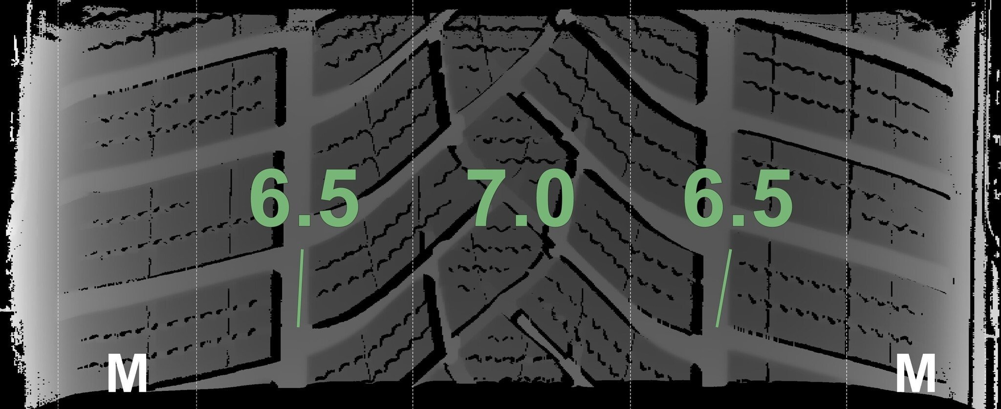 De gemeten profieldieptes en de details van de velgen zijn hierboven weergegeven.