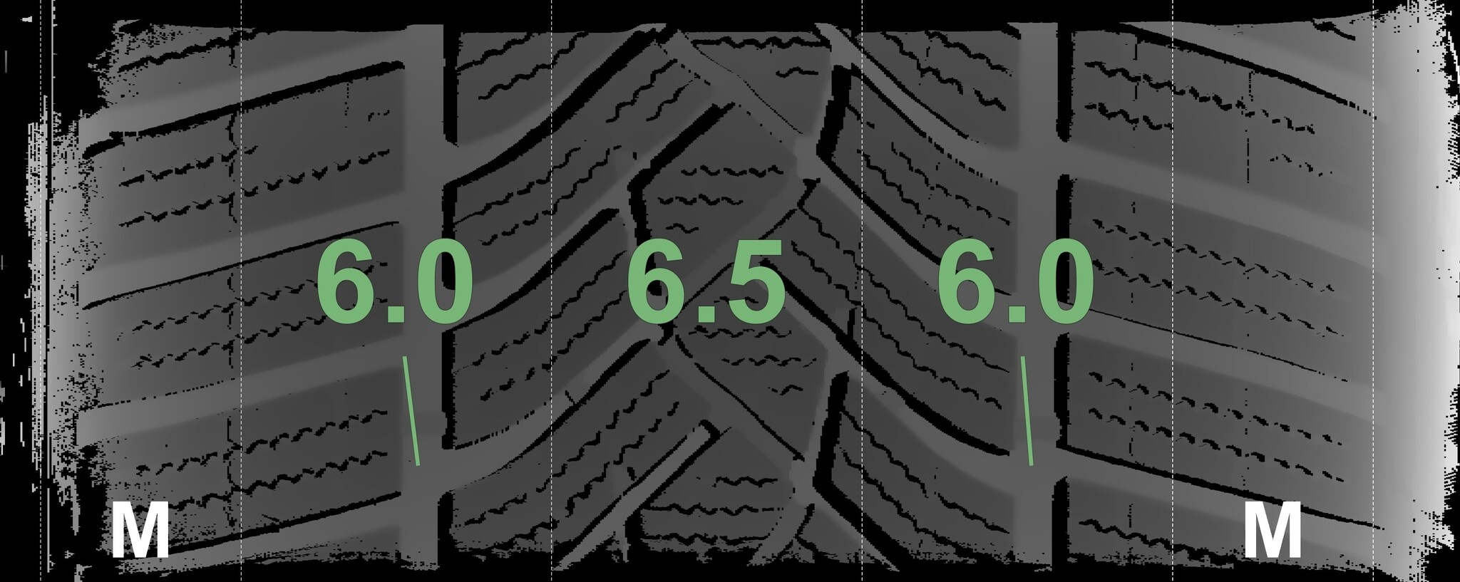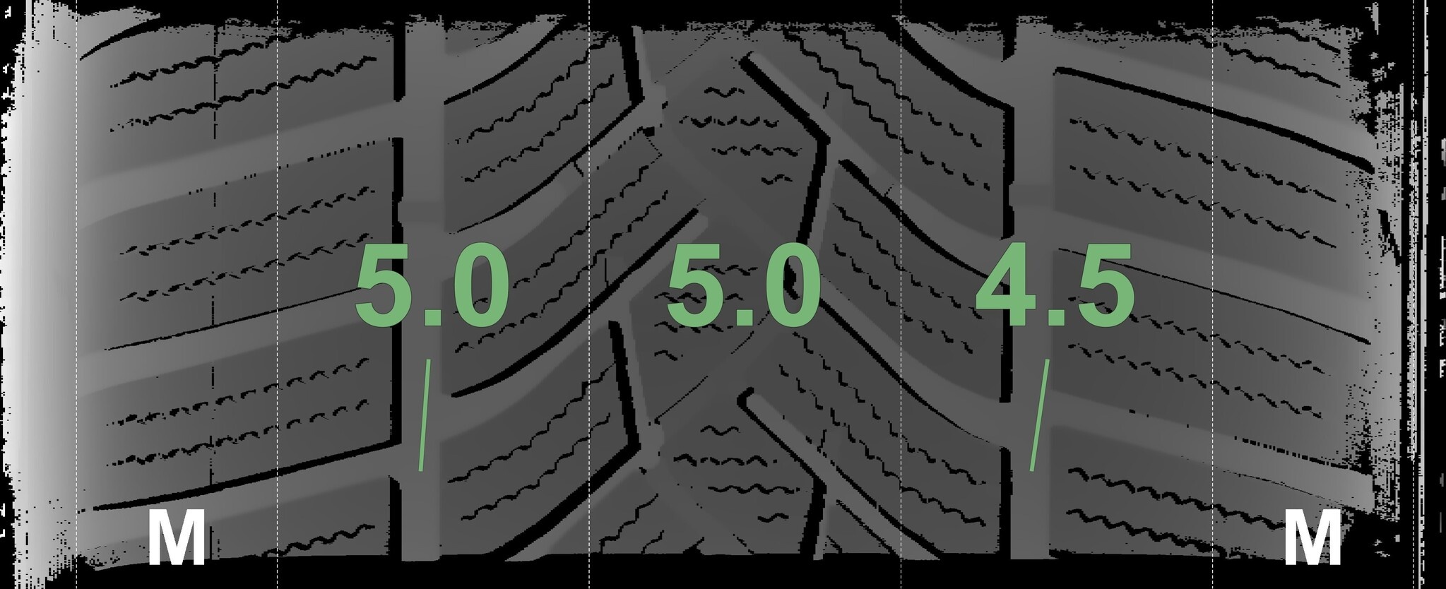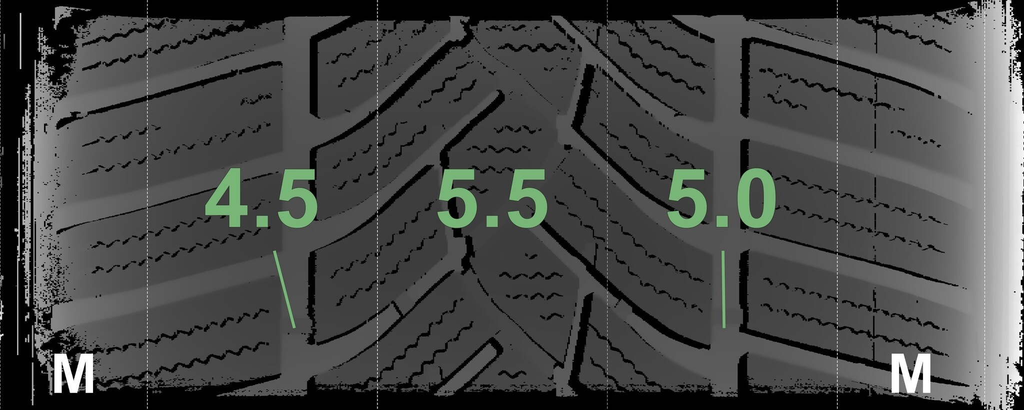 De gemeten profieldieptes en de details van de velgen zijn hierboven weergegeven.