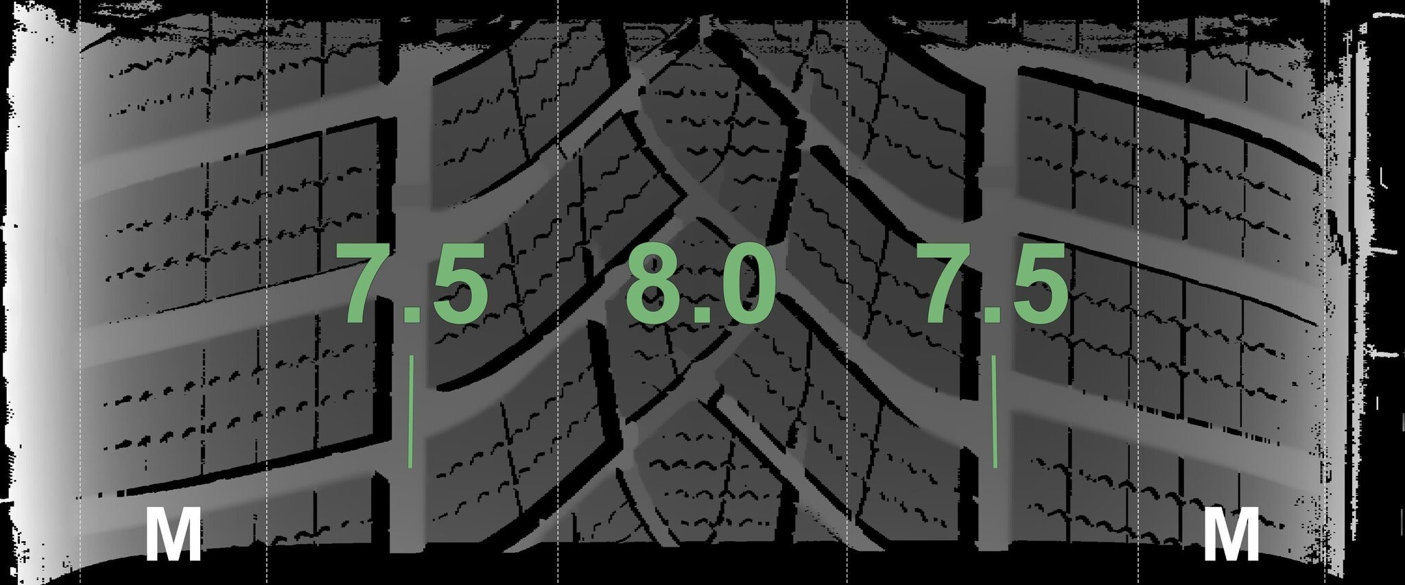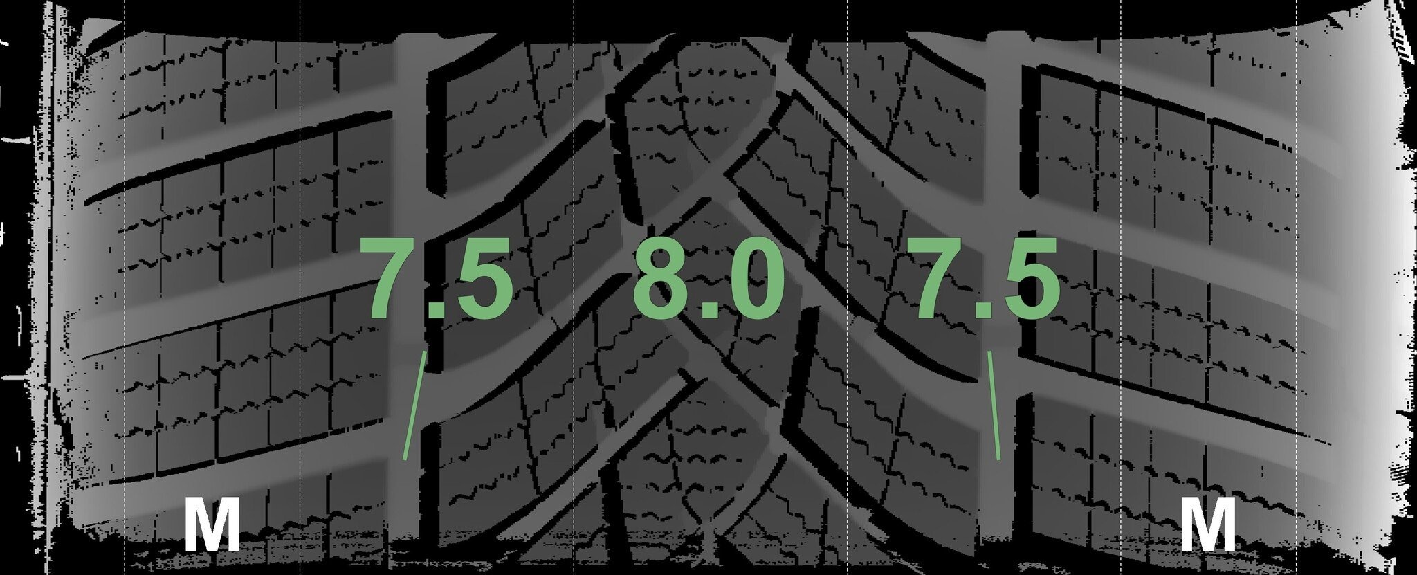 | Conditie | Profieldiepte | DOT | Rechts Achter | Demo nopjes nog zichtbaar | 7.5 mm | 2422 |
