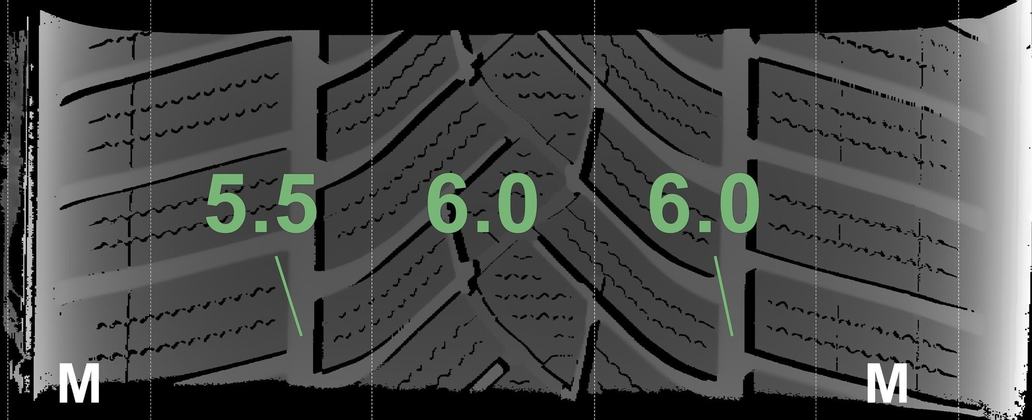 De gemeten profieldieptes en de details van de velgen zijn hierboven weergegeven.