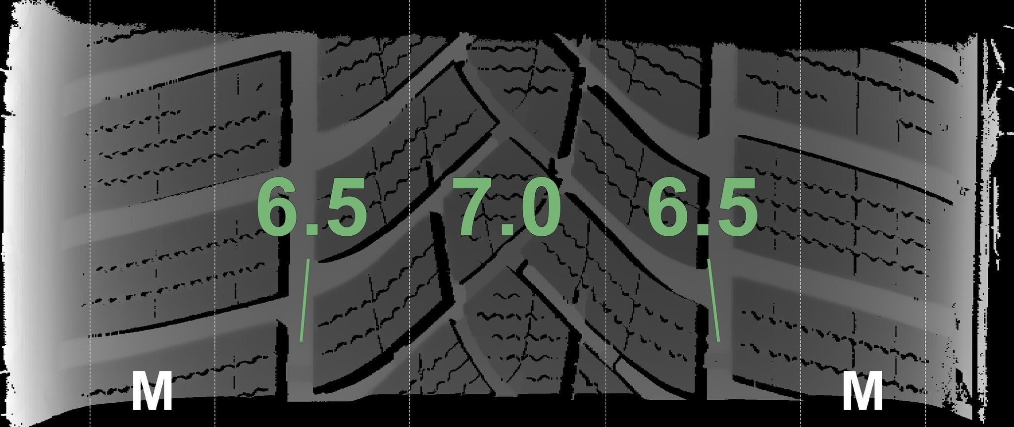 De gemeten profieldieptes en de details van de velgen zijn hierboven weergegeven.