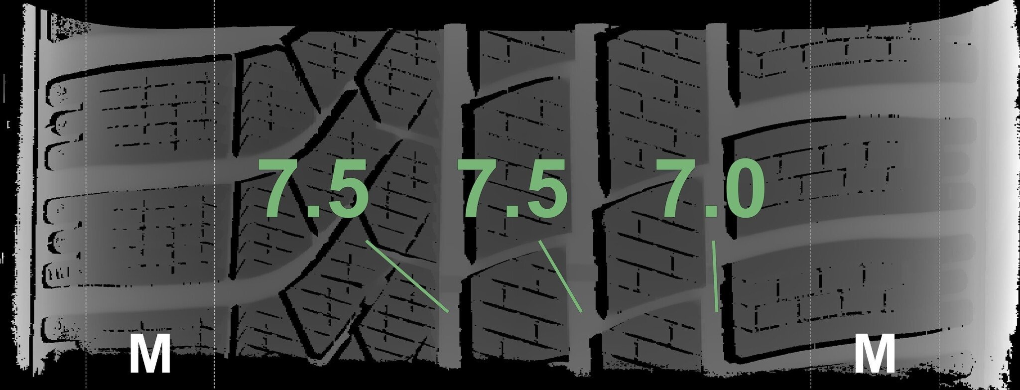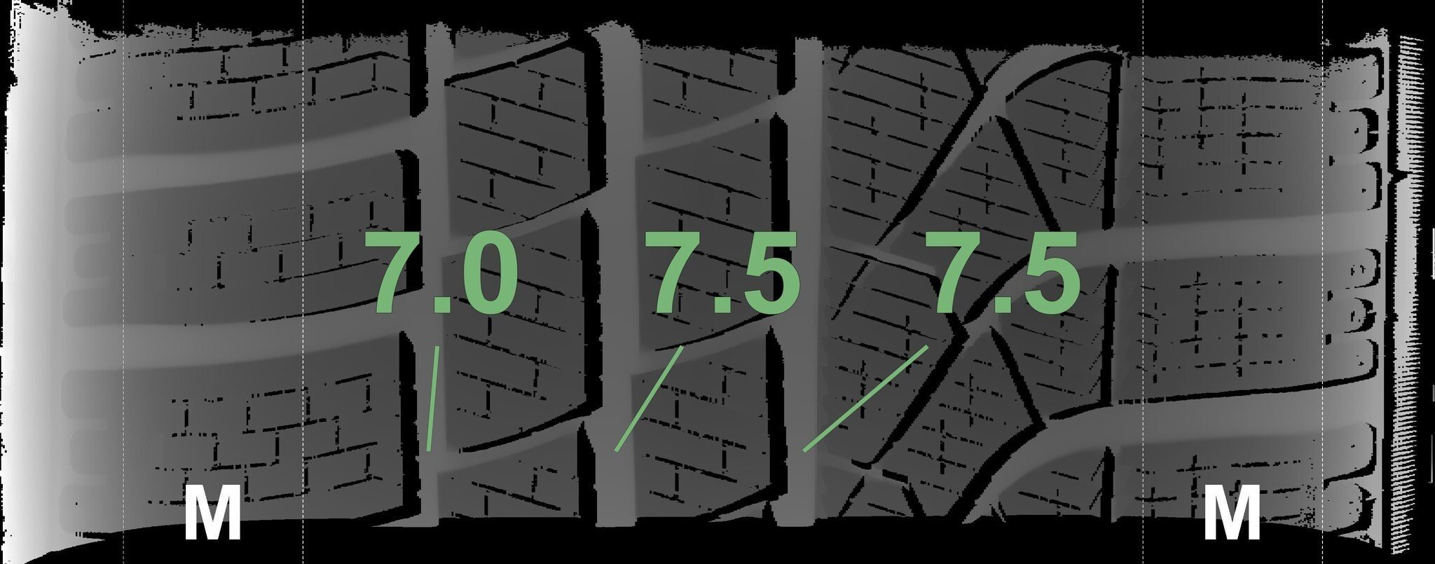 De gemeten profieldieptes en de details van de velgen zijn hierboven weergegeven.
