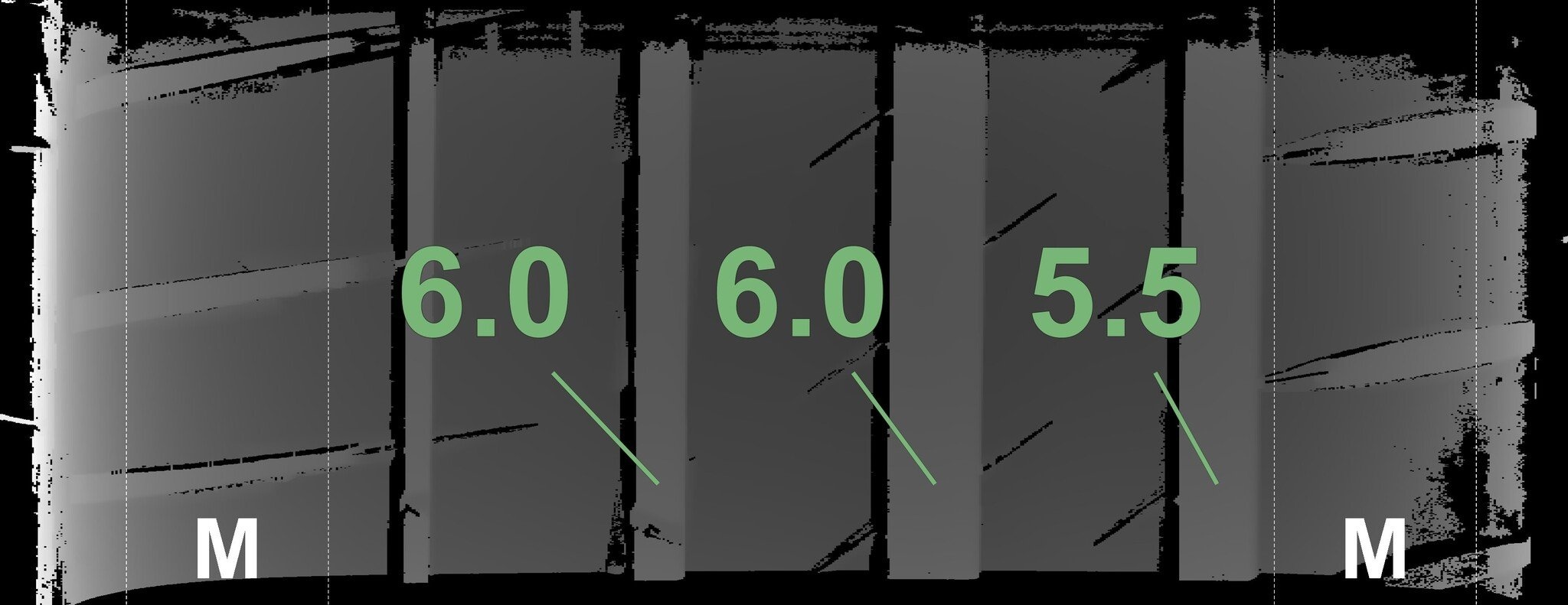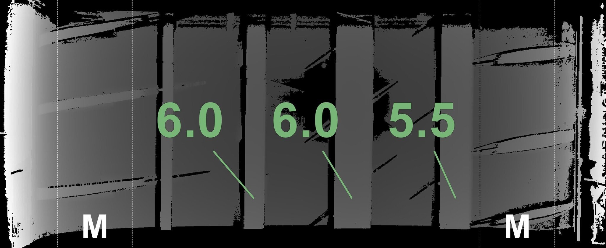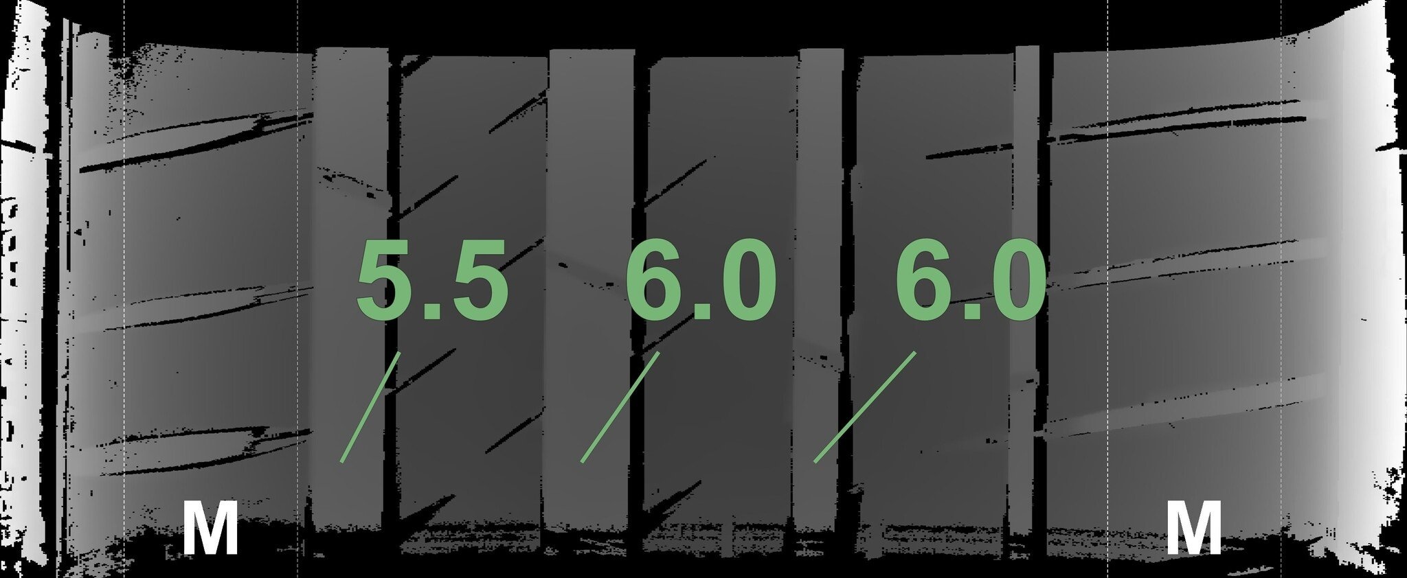 De gemeten profieldieptes en de details van de velgen zijn hierboven weergegeven.
