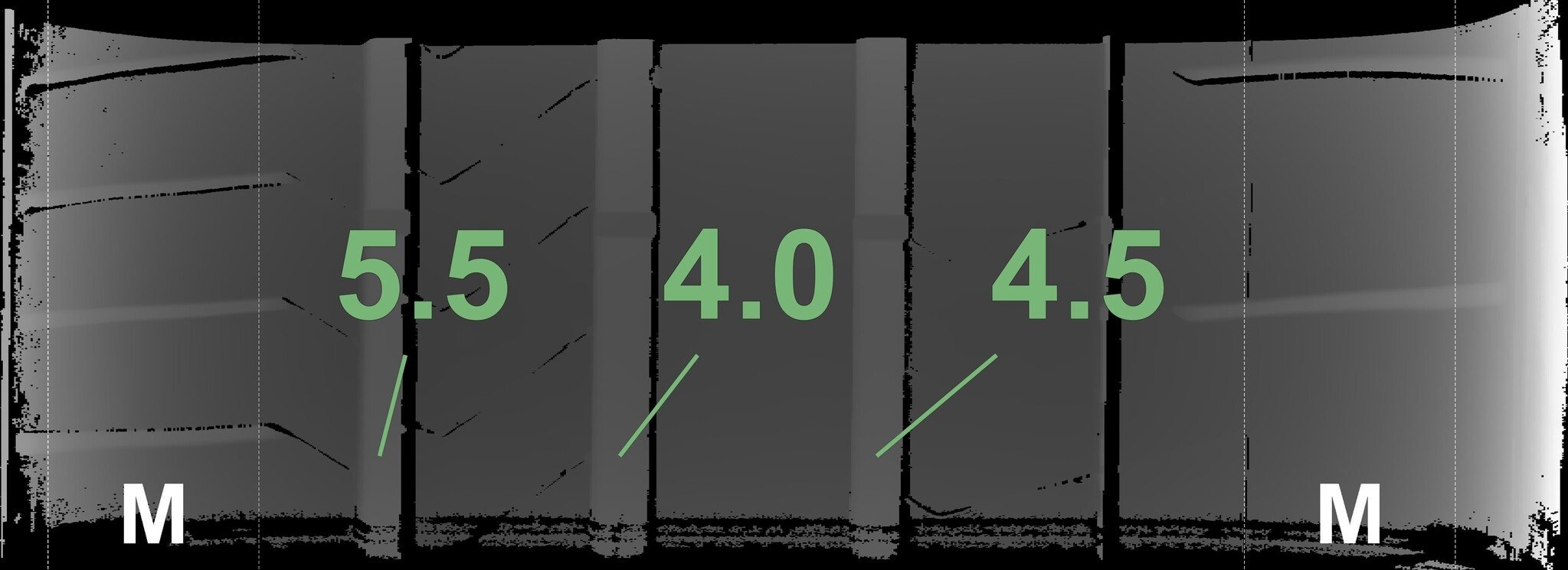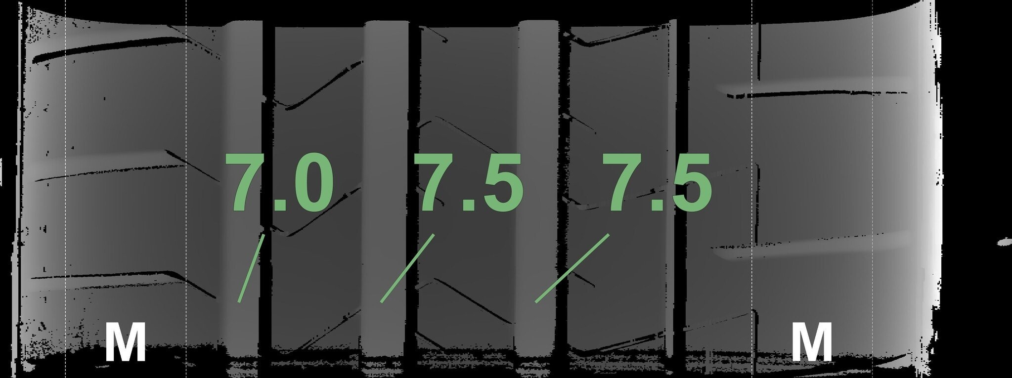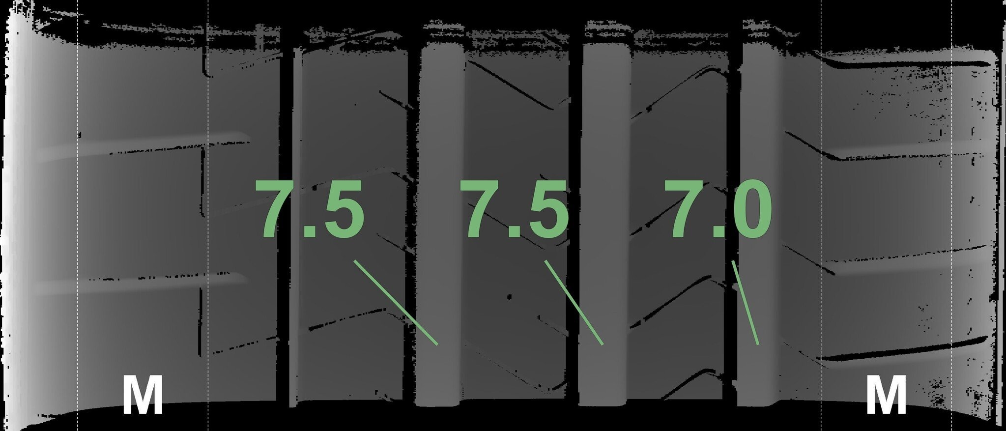 De gemeten profieldieptes en de details van de velgen zijn hierboven weergegeven.