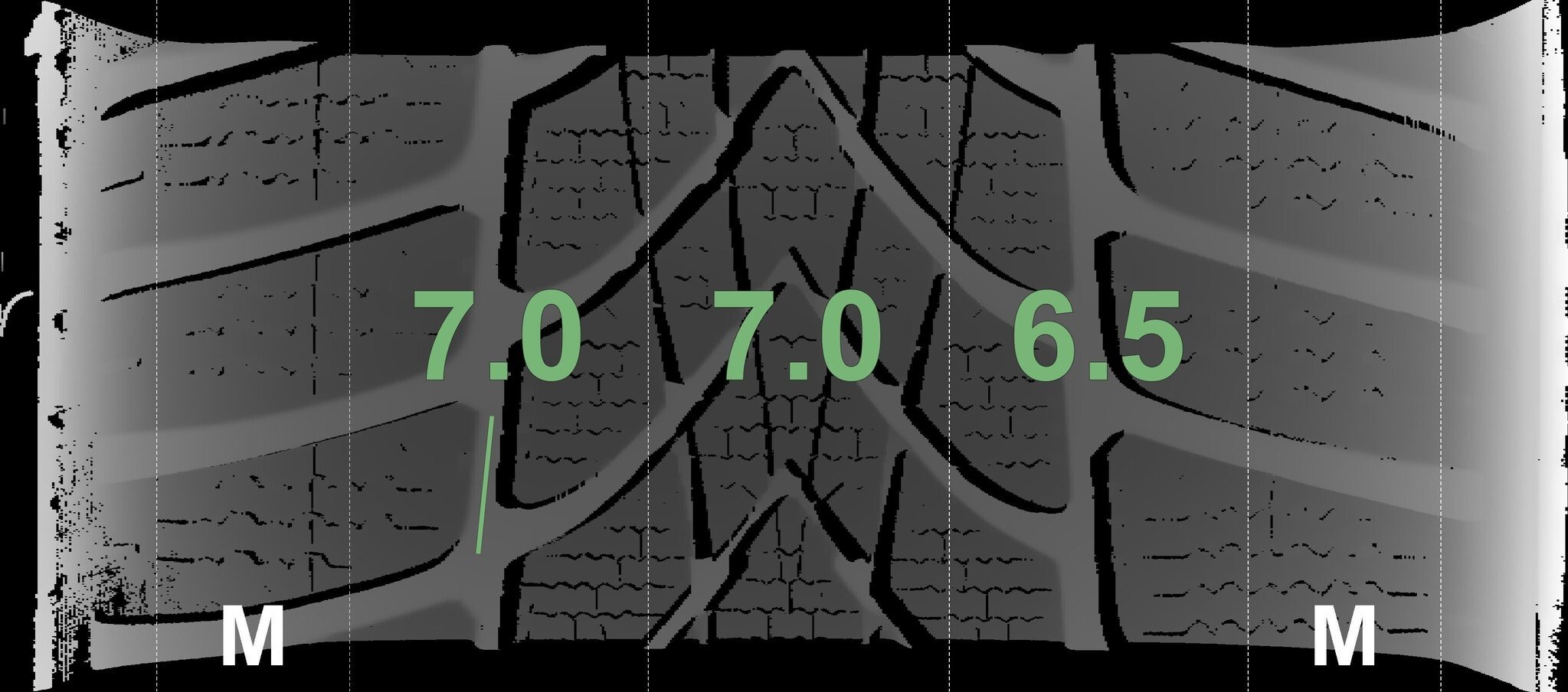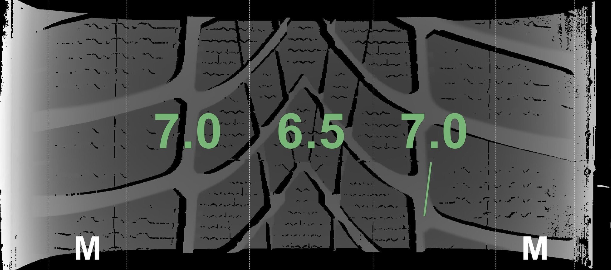 De gemeten profieldieptes en de details van de velgen zijn hierboven weergegeven.