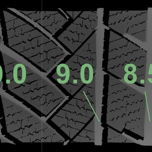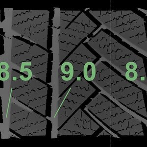 De gemeten profieldieptes en de details van de velgen zijn hierboven weergegeven.