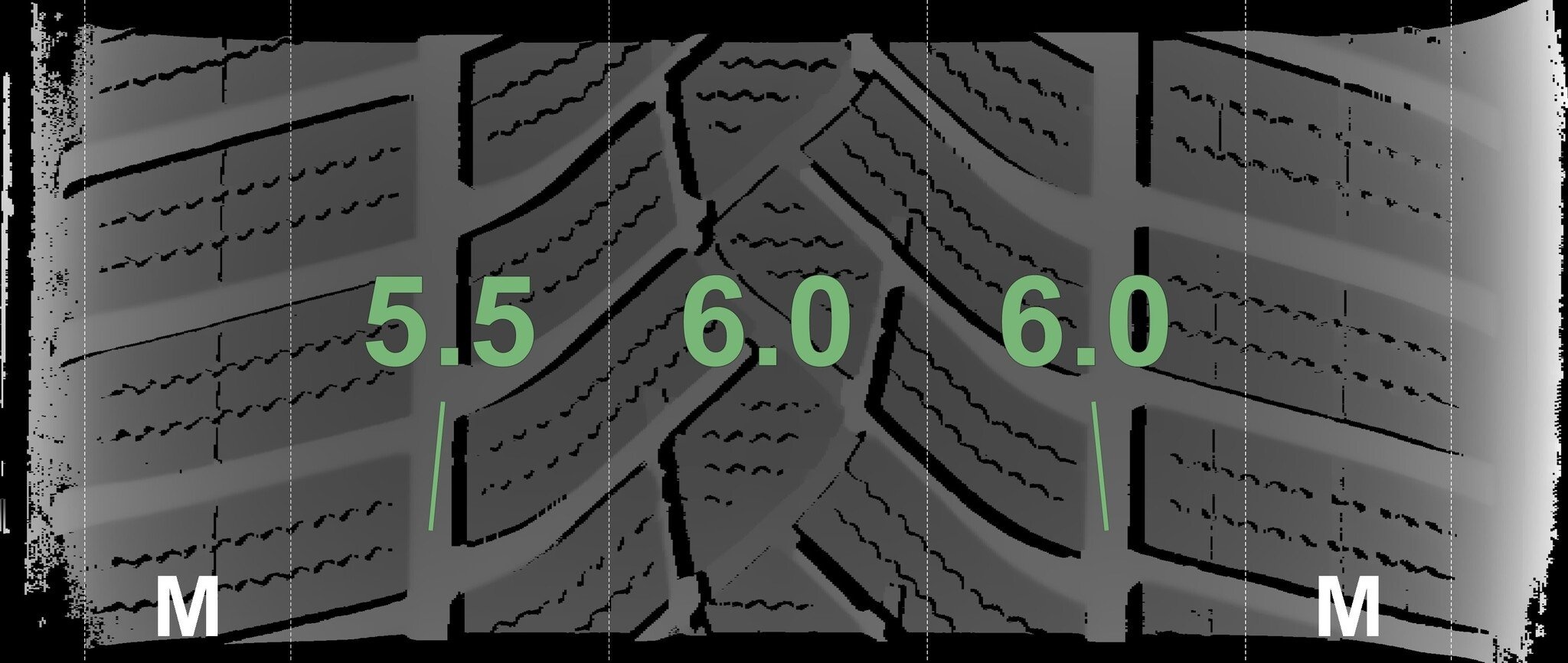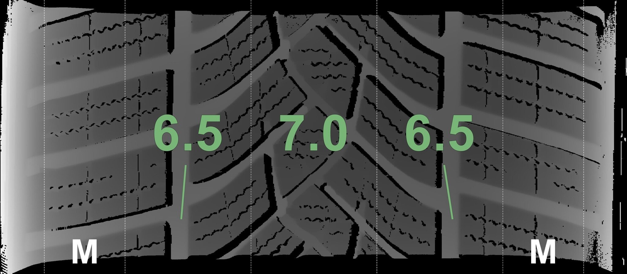 De gemeten profieldieptes en de details van de velgen zijn hierboven weergegeven.