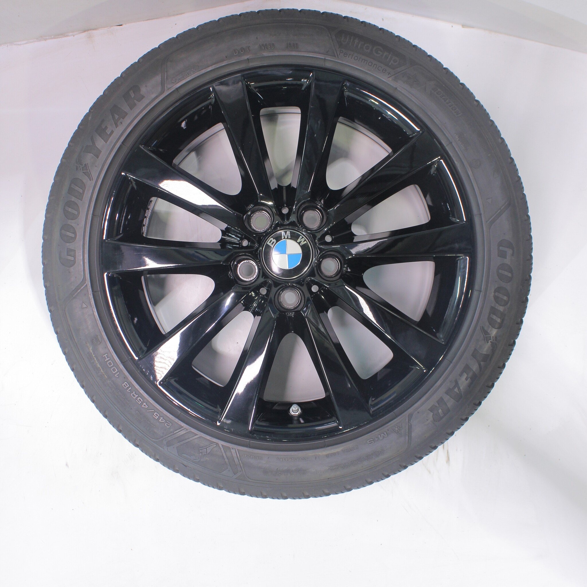 Originele wielset van BMW, styling 328, 18 inch velgen met Goodyear ULTRAGRIP PERFORMANCE + Winterbanden. Deze velgen zijn originele velgen van het merk BMW en geschikt voor: BMW 5 6 serie F06 F10 F11 F12 F13.