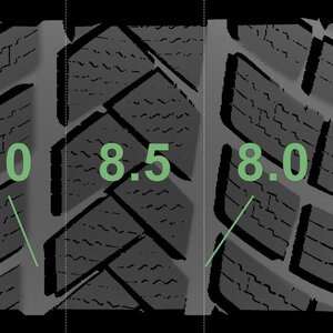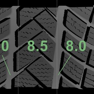 De gemeten profieldieptes en de details van de velgen zijn hierboven weergegeven.