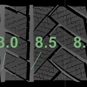 De gemeten profieldieptes en de details van de velgen zijn hierboven weergegeven.