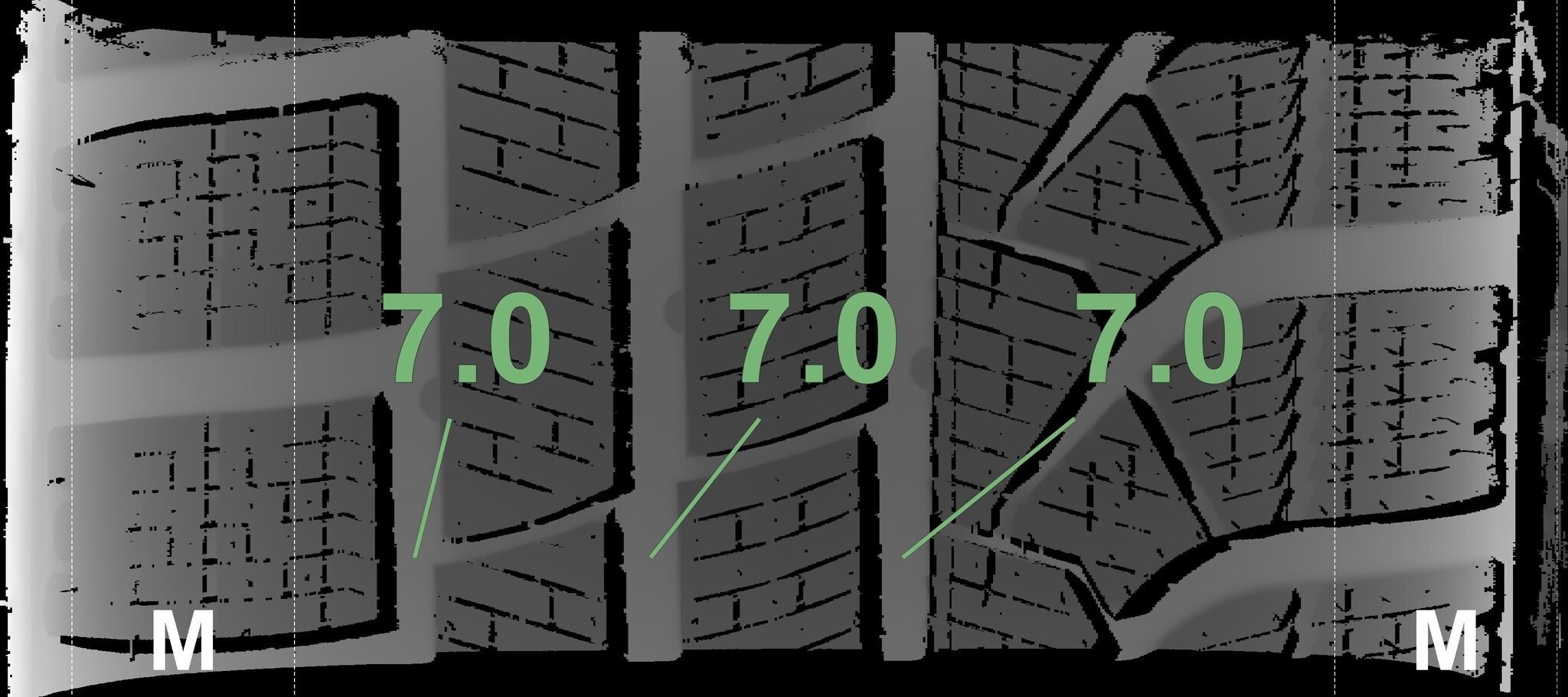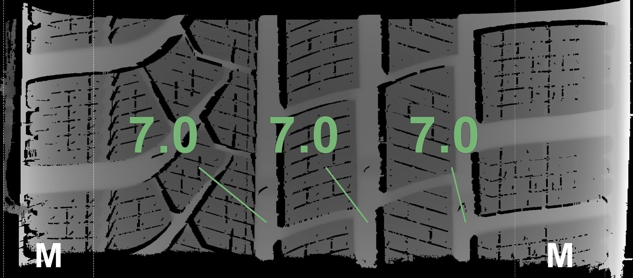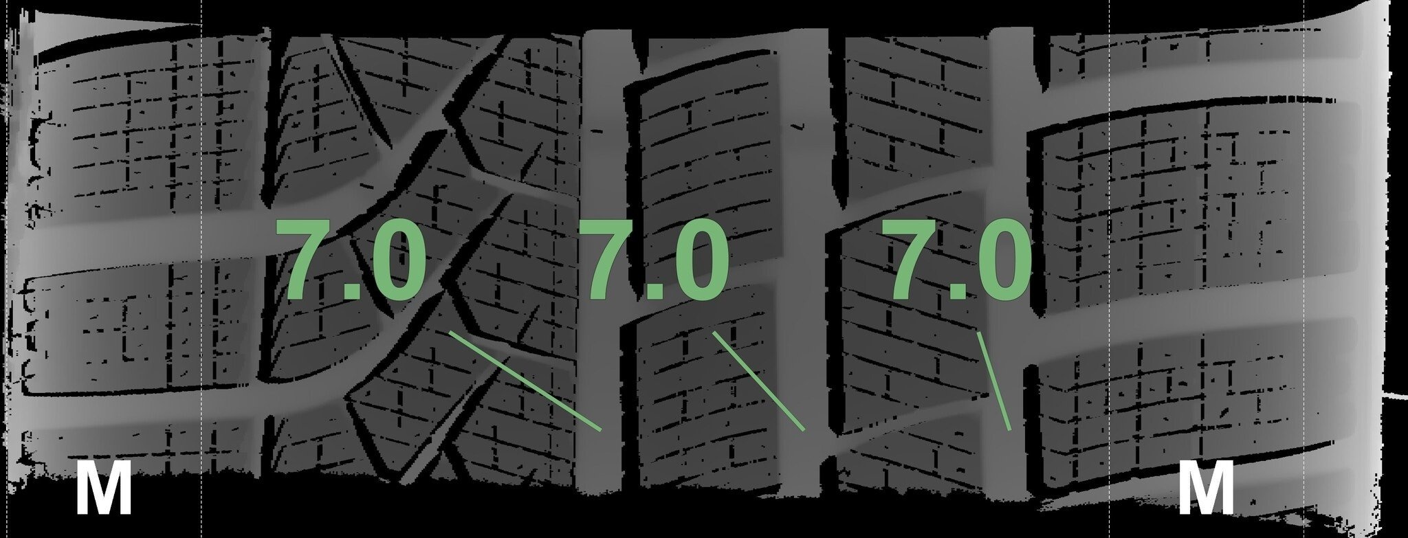 De gemeten profieldieptes en de details van de velgen zijn hierboven weergegeven.