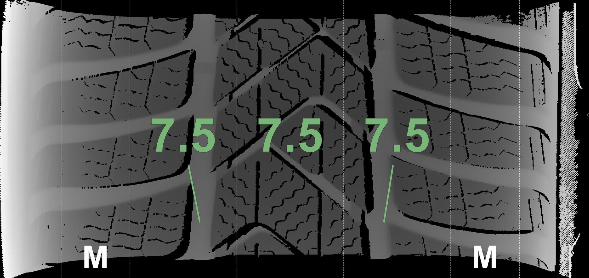 De gemeten profieldieptes en de details van de velgen zijn hierboven weergegeven.