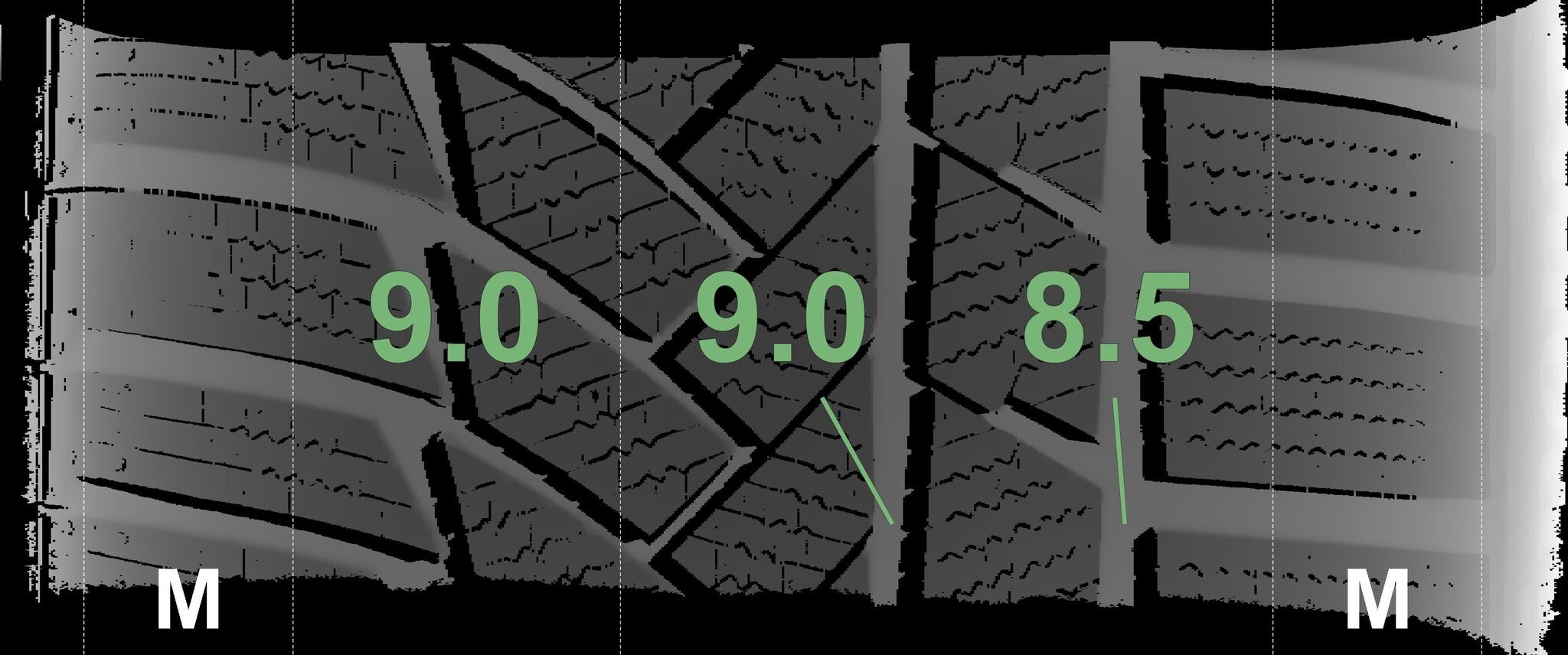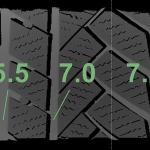 De gemeten profieldieptes en de details van de velgen zijn hierboven weergegeven.
