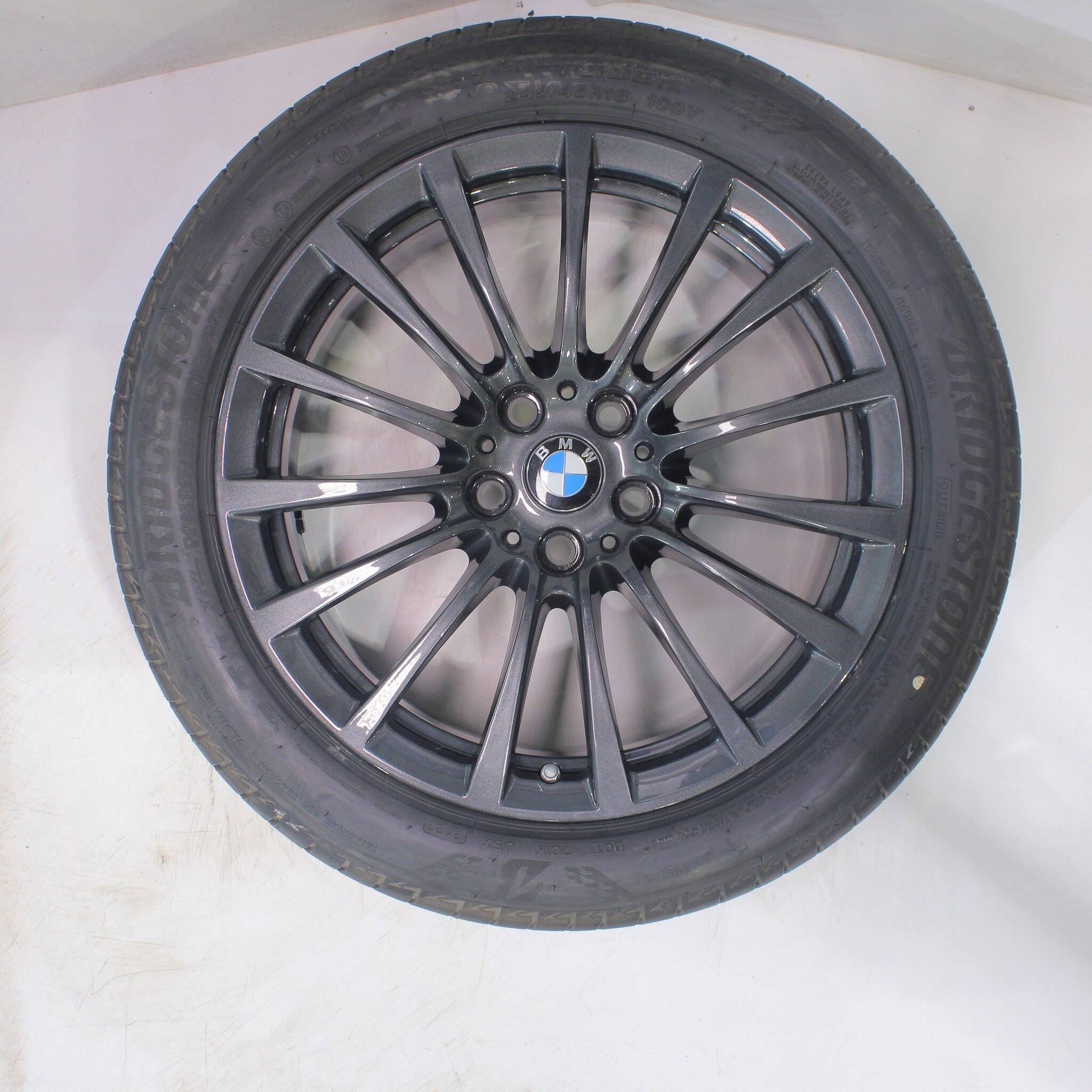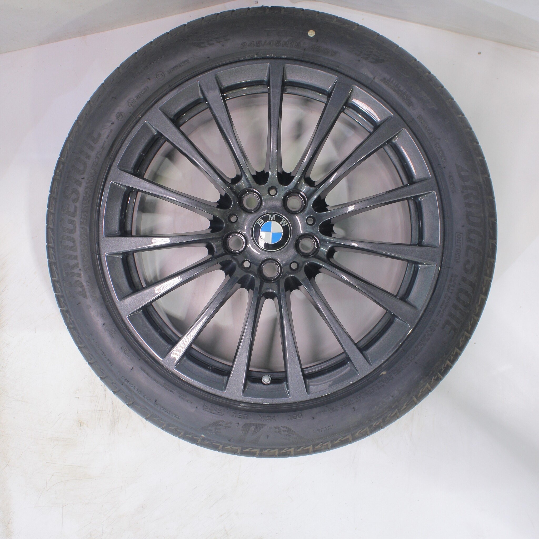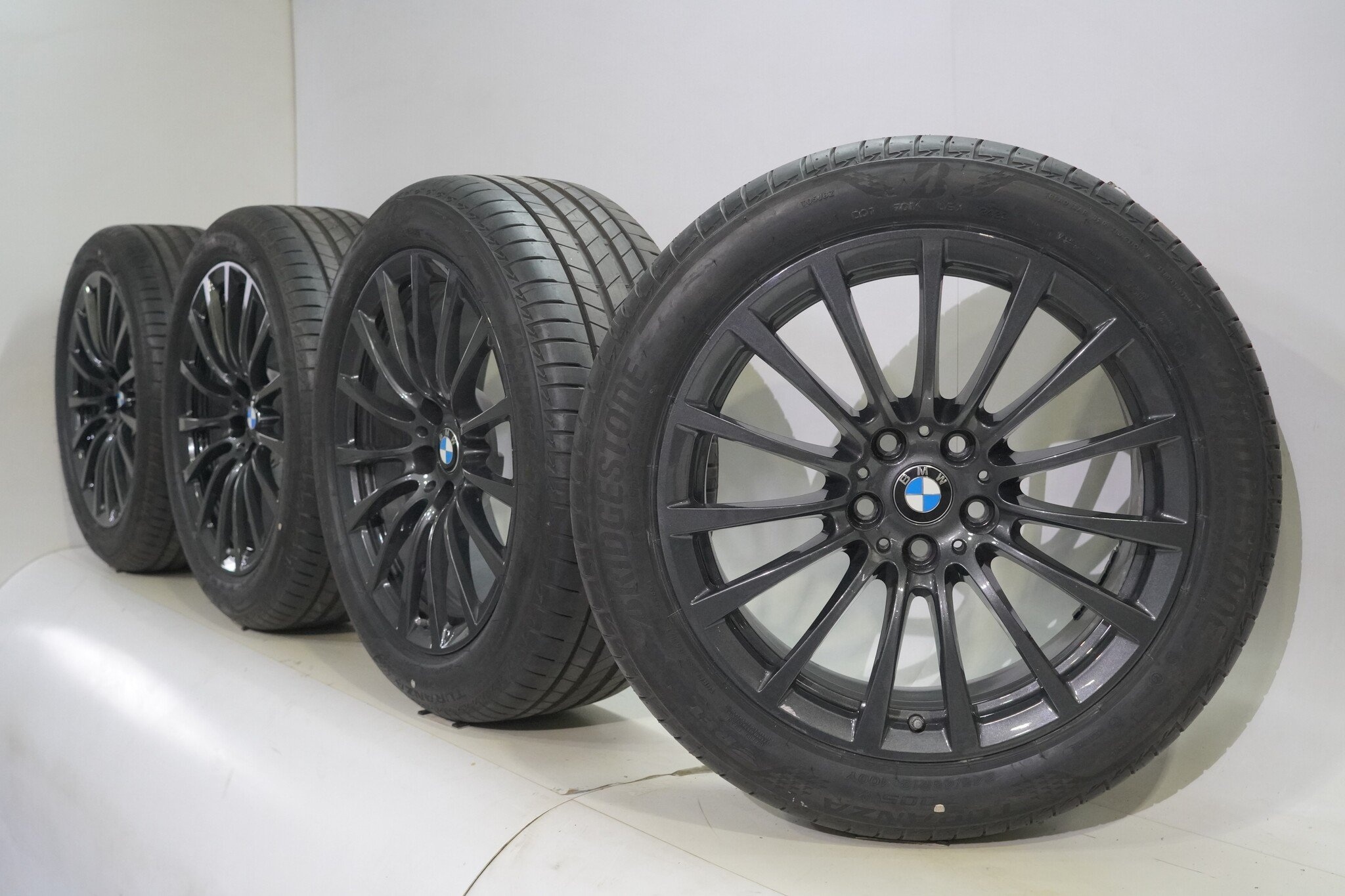 Originele wielset van BMW, styling 619, 18 inch velgen met Bridgestone TURANZA T005 Runflat Zomerbanden. Deze velgen zijn originele velgen van het merk BMW en geschikt voor: BMW 5 serie G30 G31 8 serie G14 G15 G16.