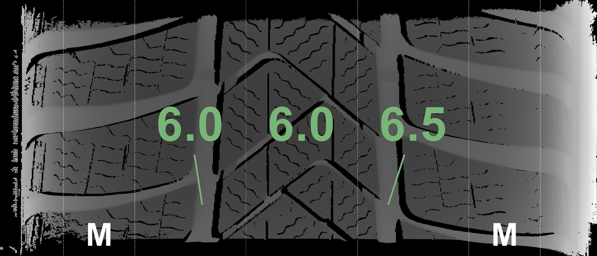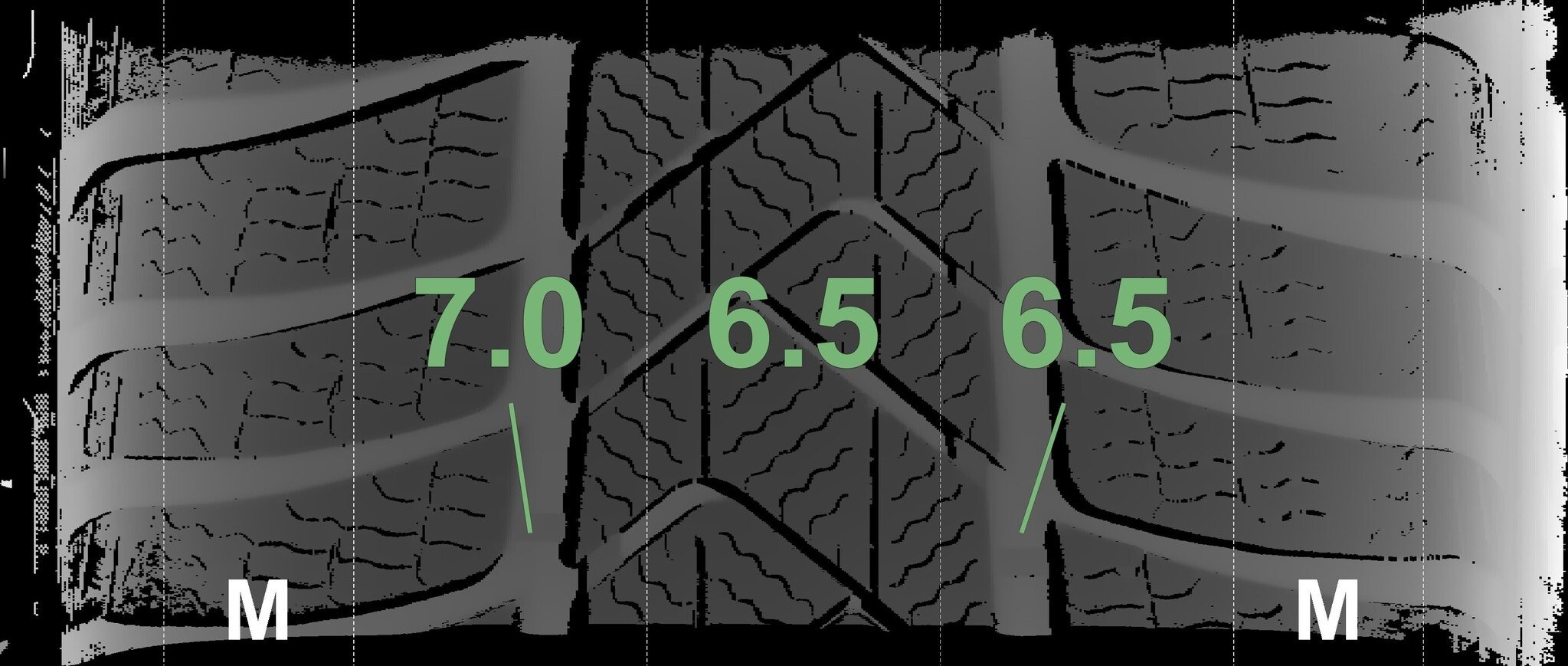 De gemeten profieldieptes en de details van de velgen zijn hierboven weergegeven.