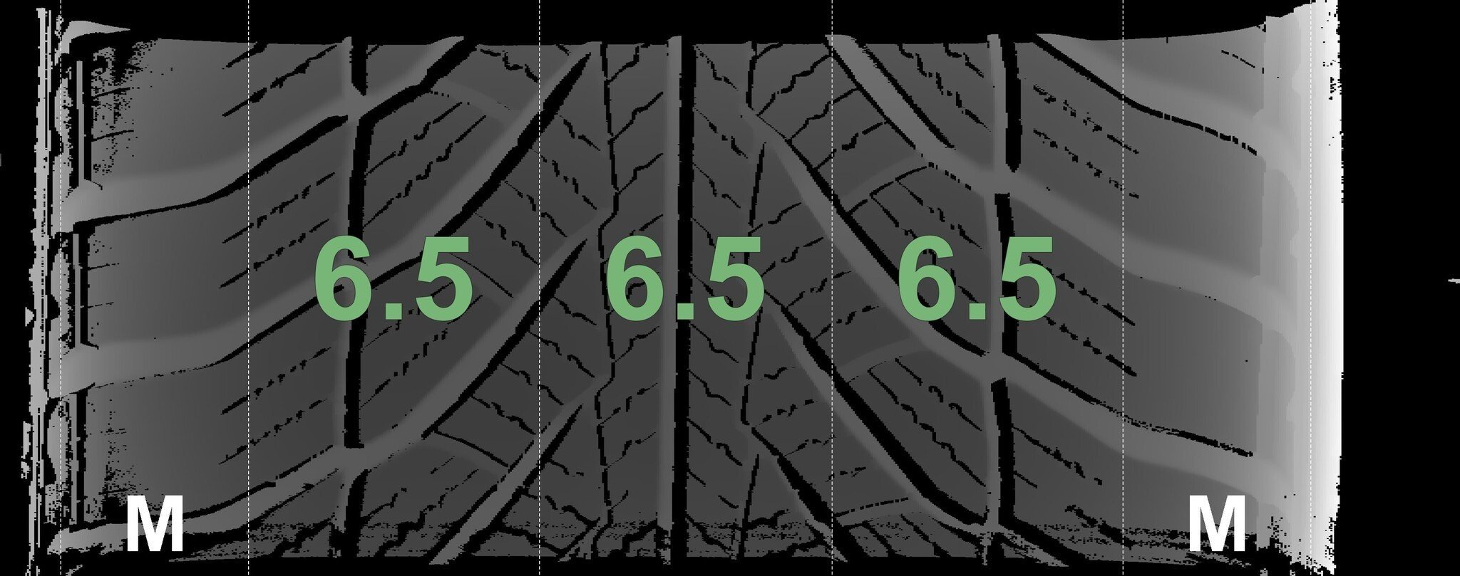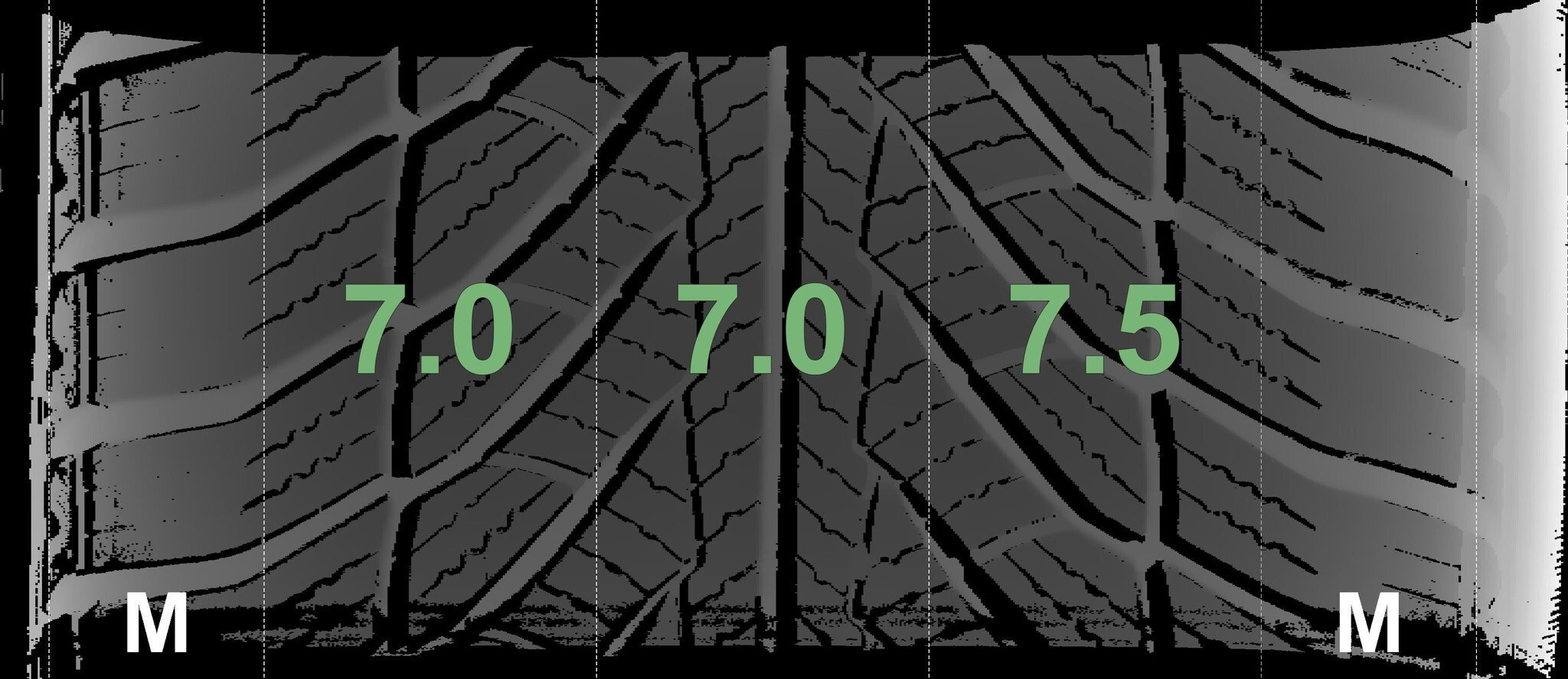 De gemeten profieldieptes en de details van de velgen zijn hierboven weergegeven.