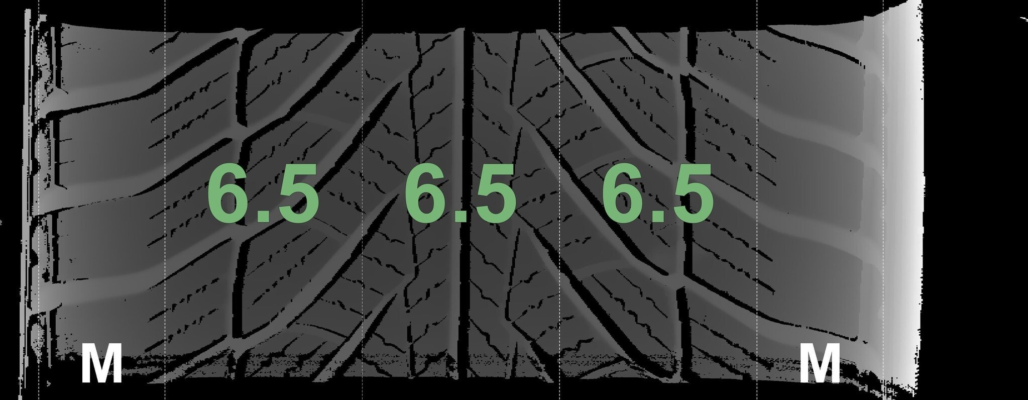 De gemeten profieldieptes en de details van de velgen zijn hierboven weergegeven.