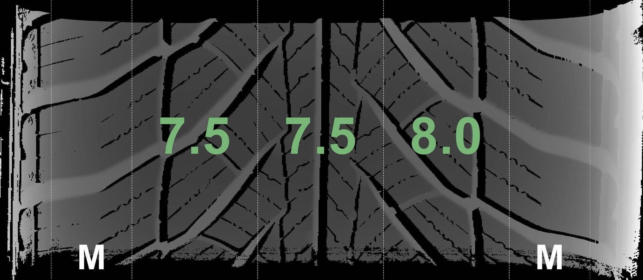 | Conditie | Profieldiepte | DOT | Links Voor | Gebruikt | 7.2 mm | 3520 |