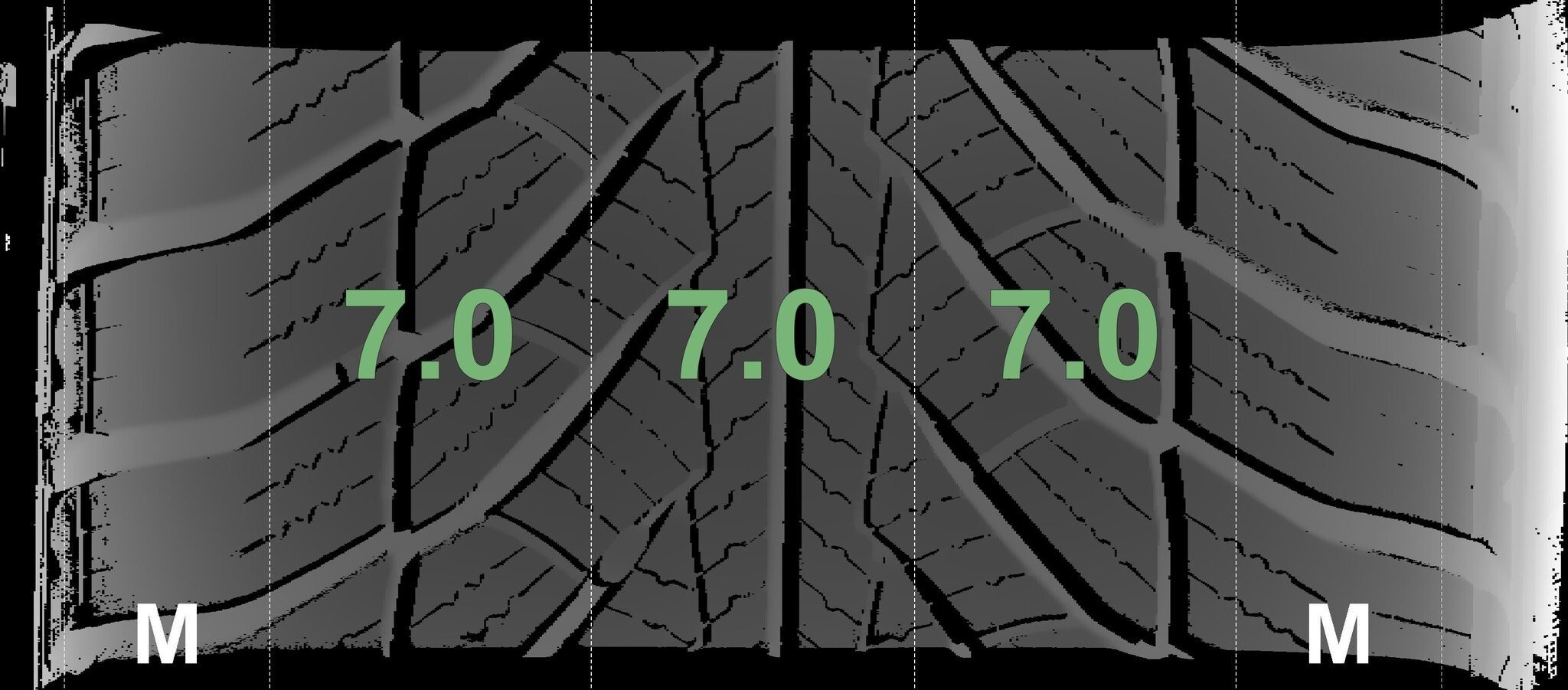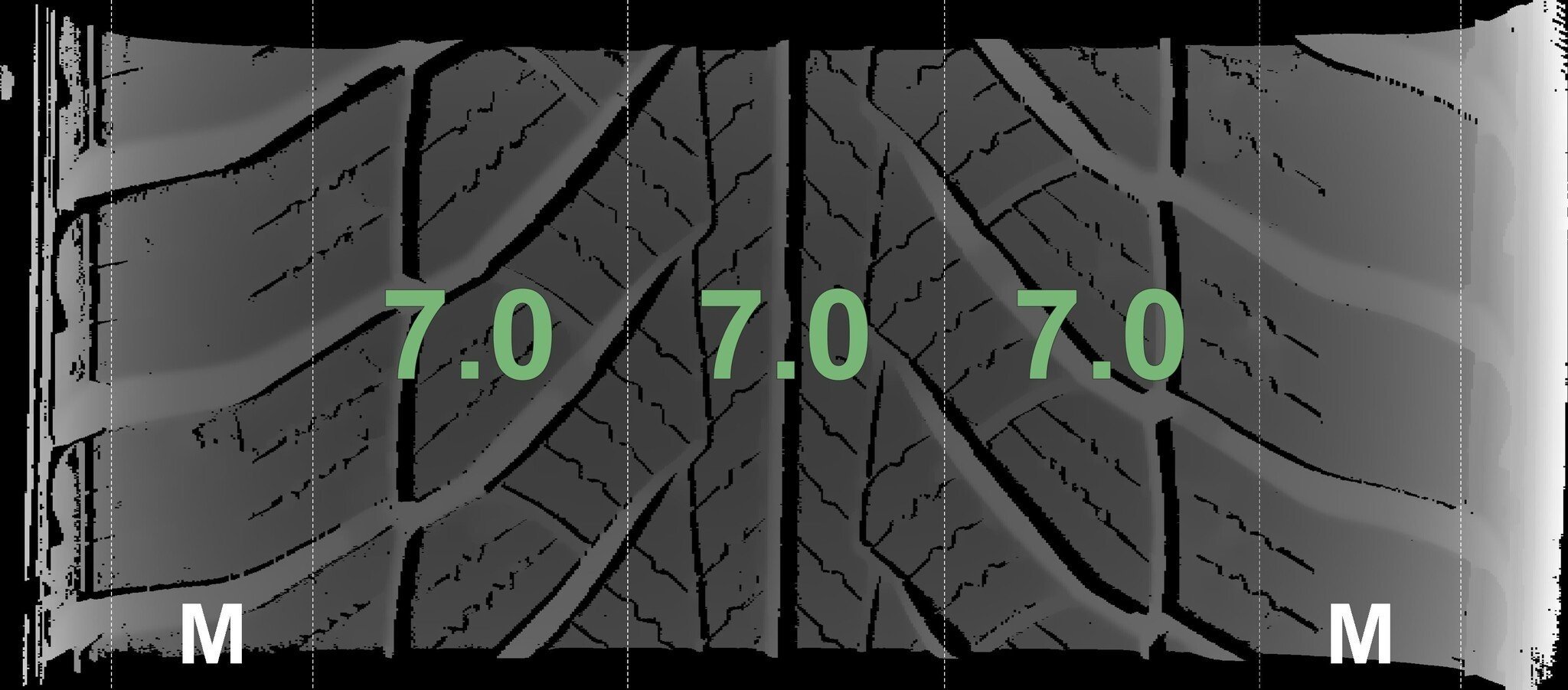 | Conditie | Profieldiepte | DOT | Links Achter | Gebruikt | 7.0 mm | 3619 |