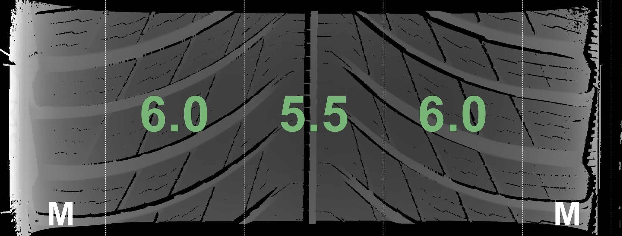 De gemeten profieldieptes en de details van de velgen zijn hierboven weergegeven.